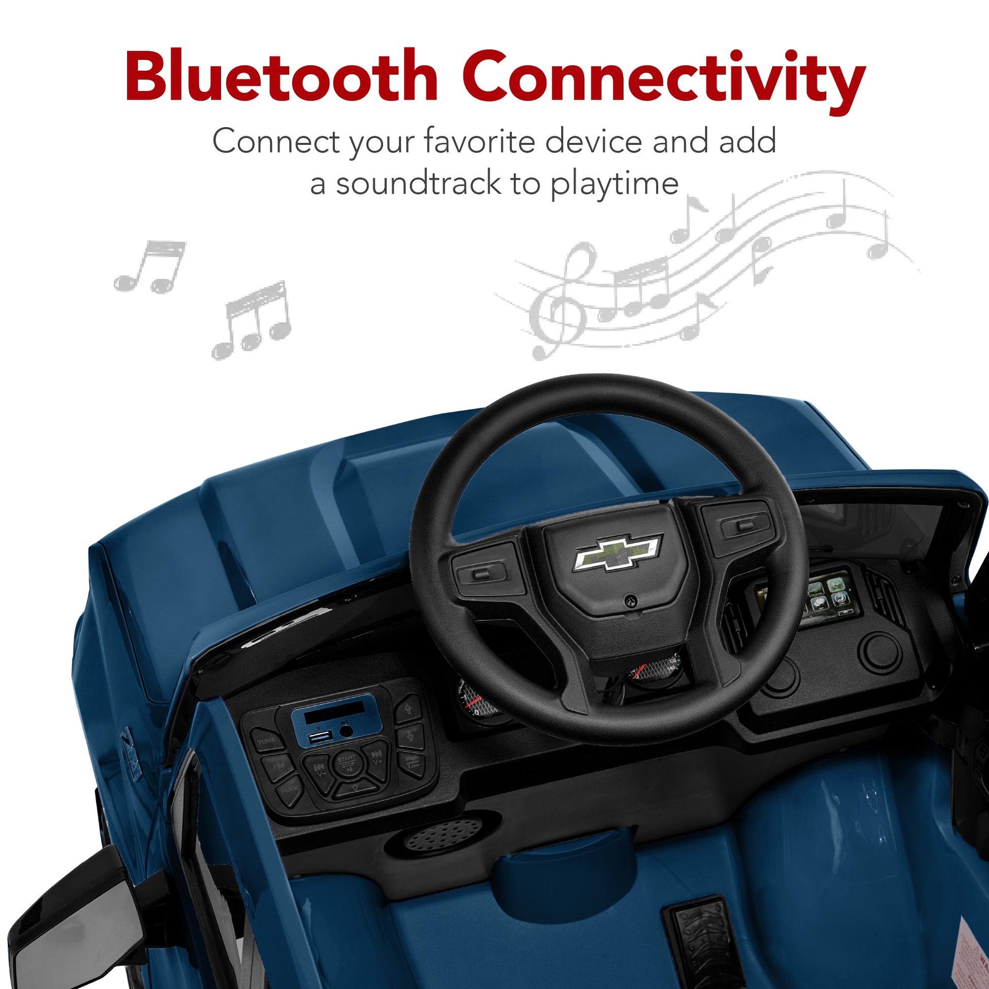 • BLUETOOTH CONNECTIVITY: A built-in sound system allows kids to connect their media devices and enjoy their drive with their favorite music