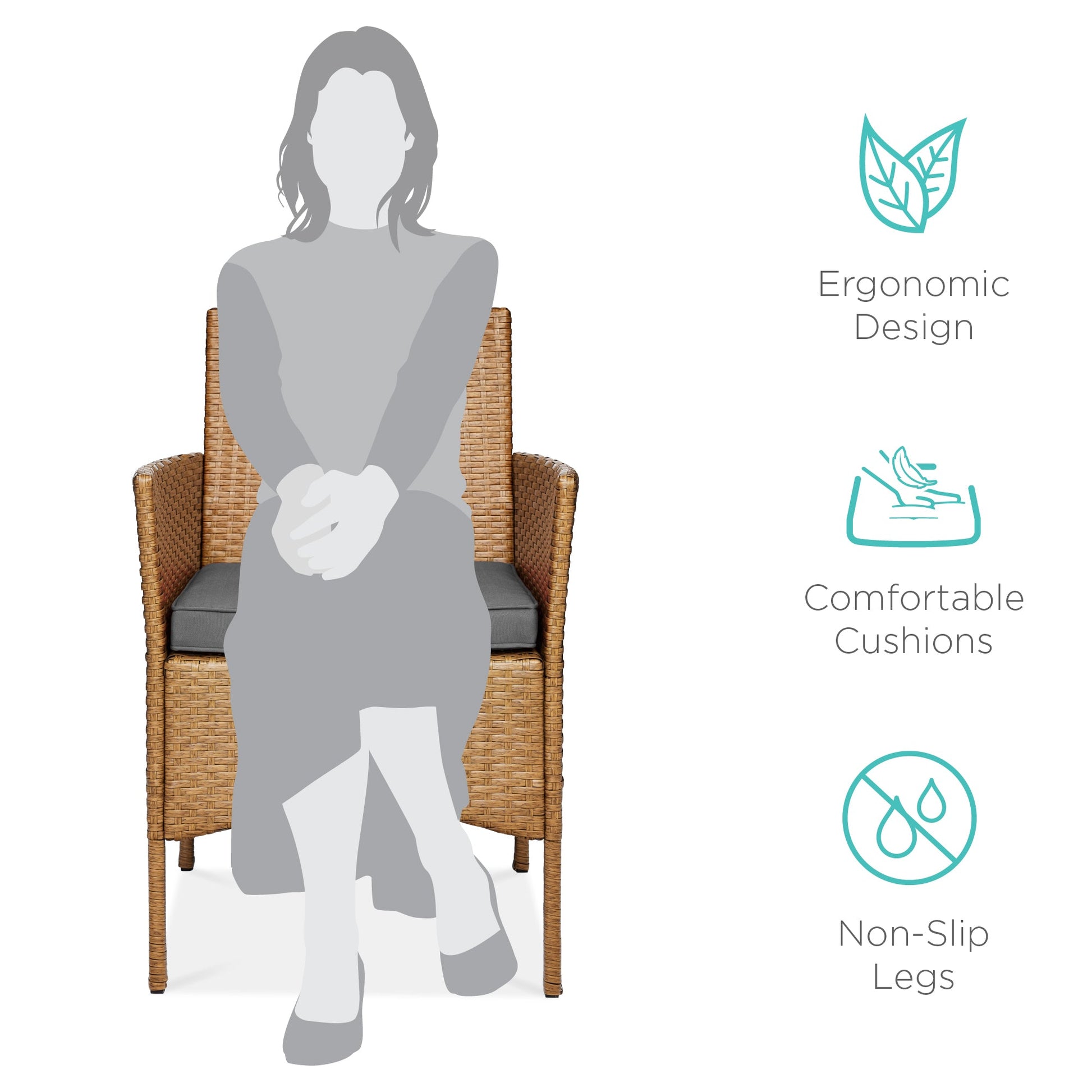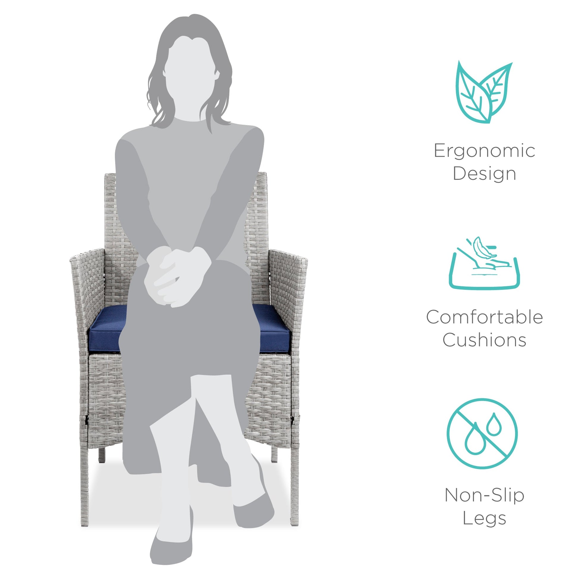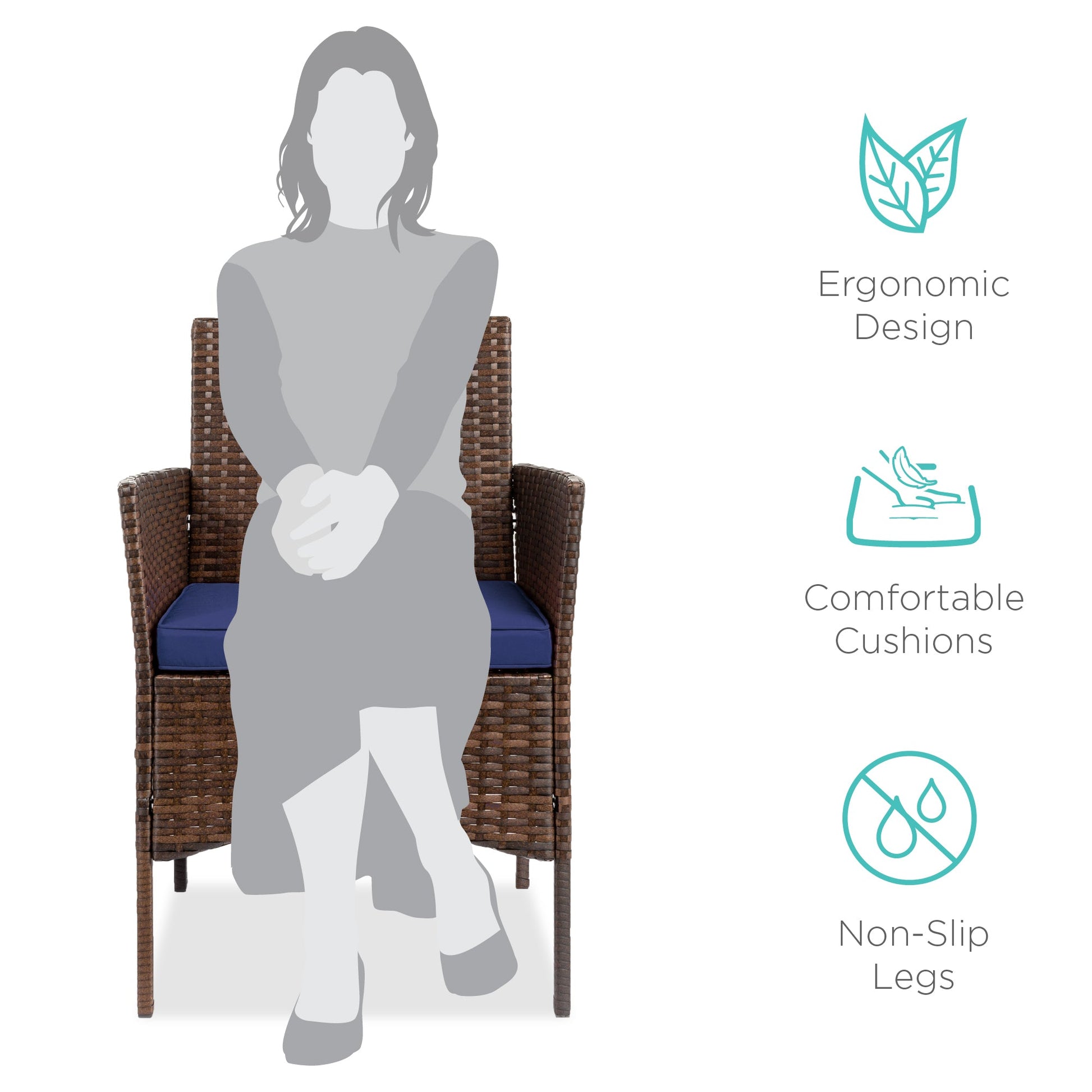 3-Piece Outdoor Patio Wicker Bistro Set w/ Side Storage Table