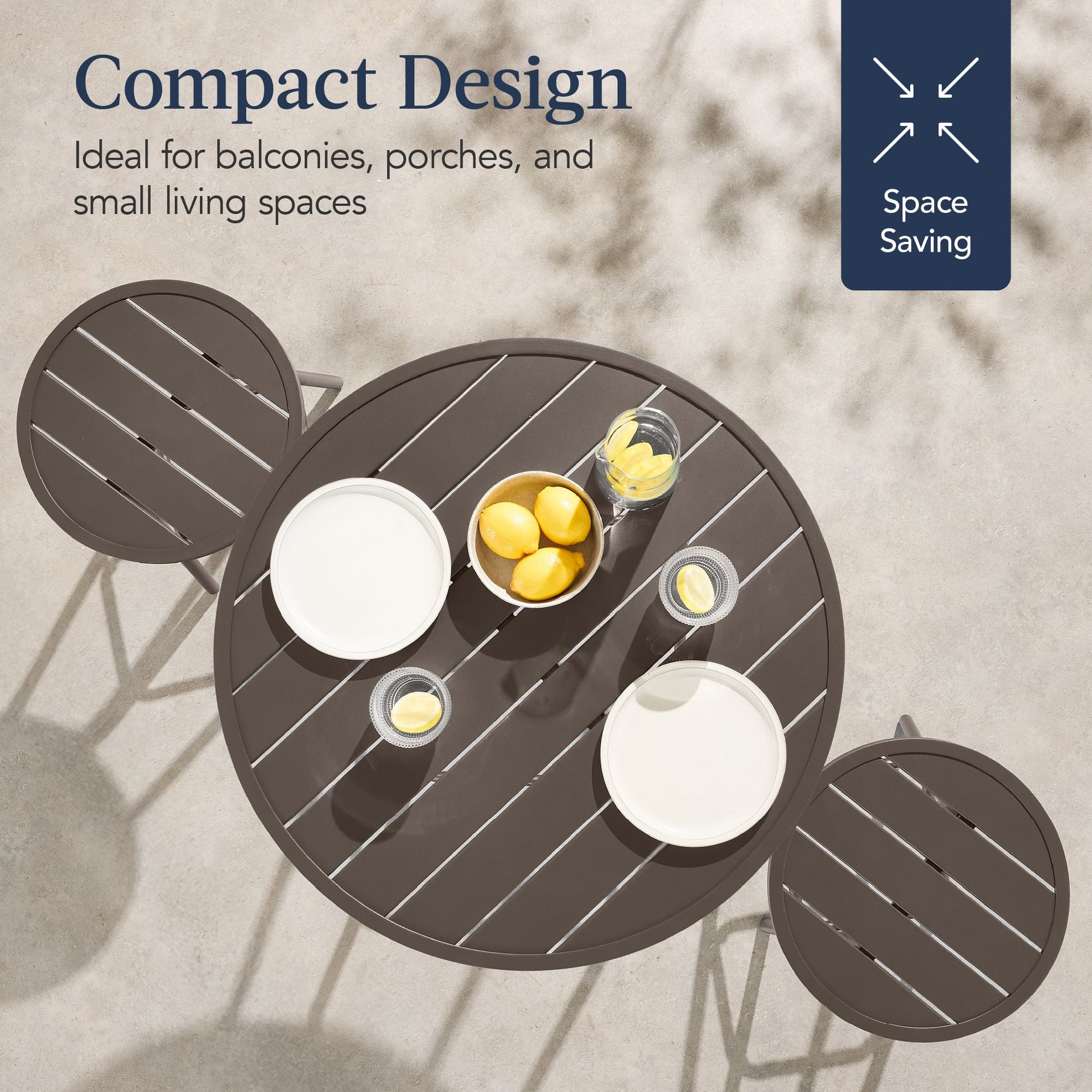 3-Piece Patio Bar Height Bistro Set w/ Backless Stools, Slatted Design