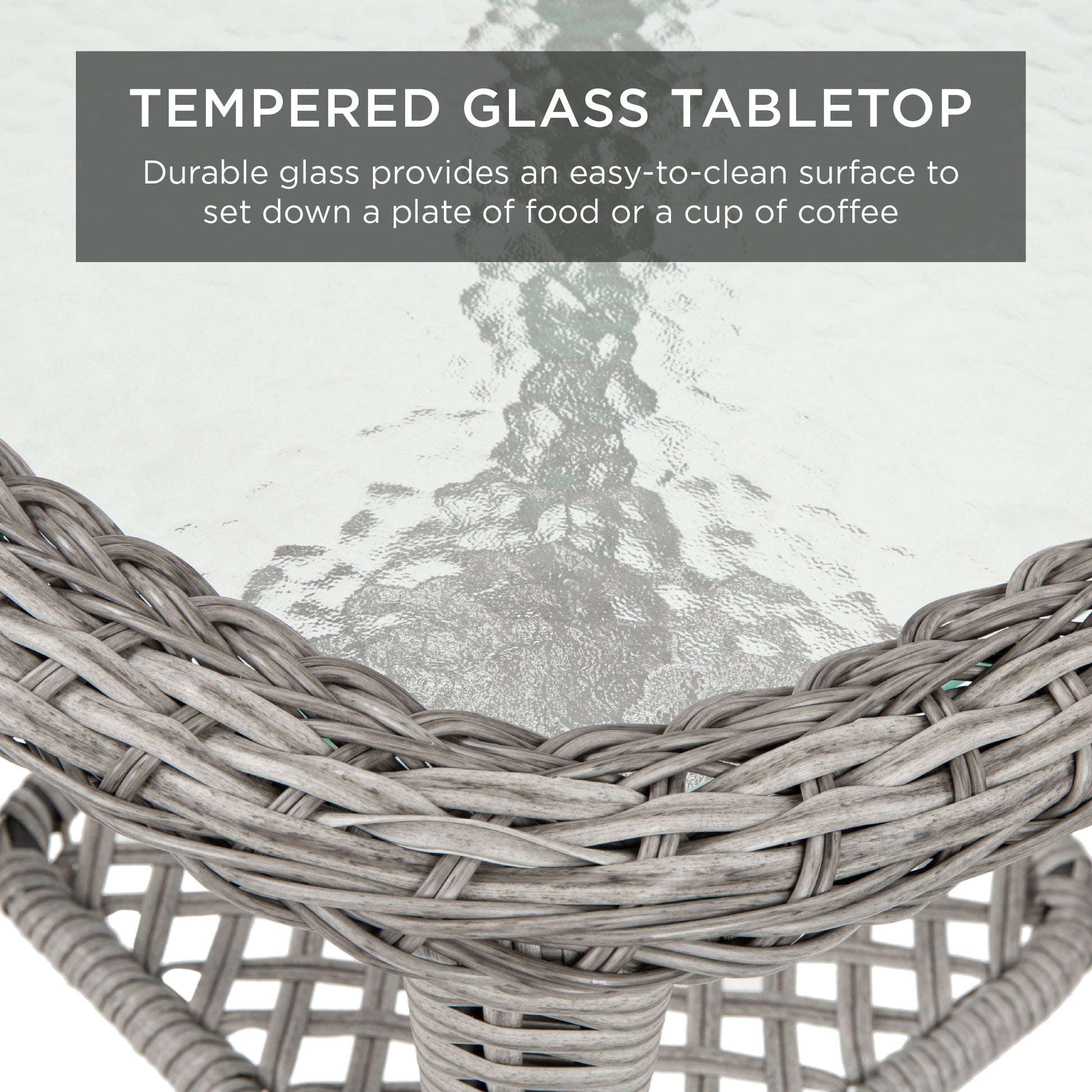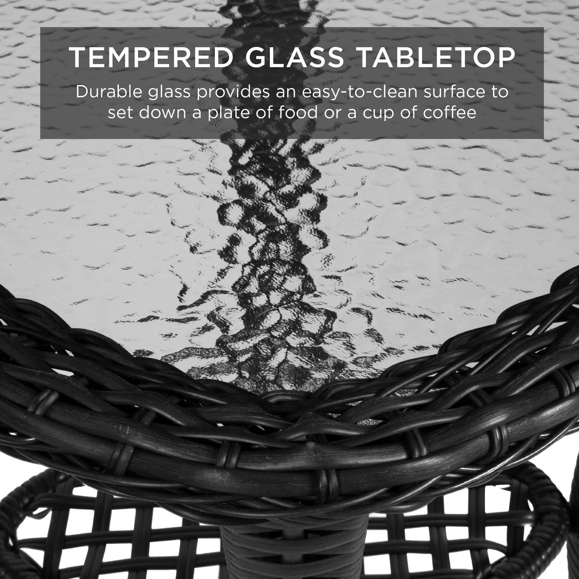 3-Piece Patio Wicker Bistro Furniture Set w/ 2 Swivel Rocking Chairs, Table