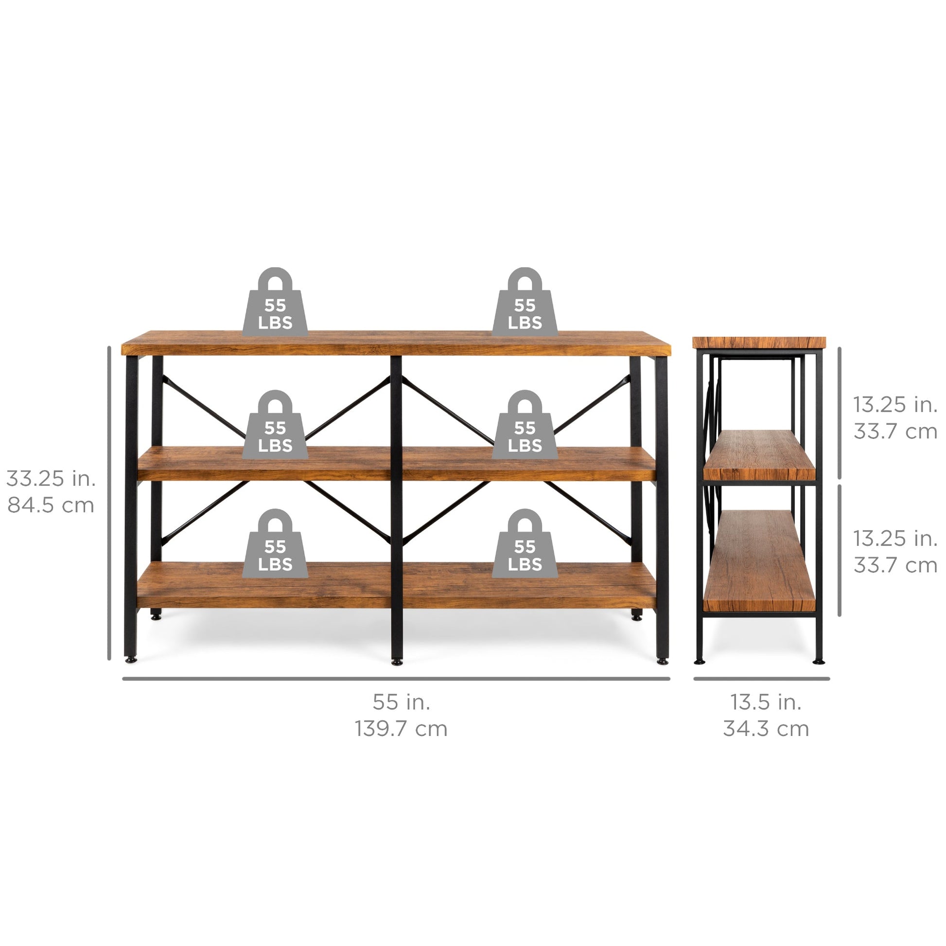 3-Tier Industrial Hallway Console Table for Living Room, Entry Way - 55in