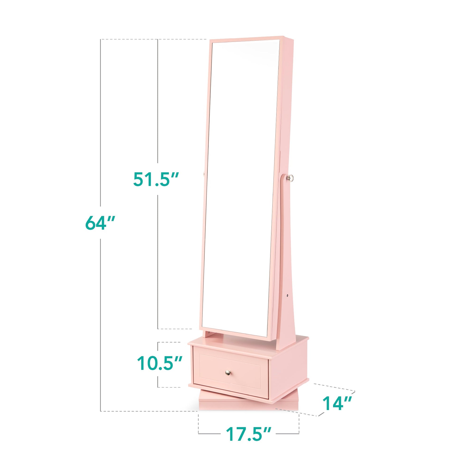 • FULL-LENGTH BEVELED MIRROR: Features a built-in mirror on the cabinet door equipped with a magnetic latch for added security