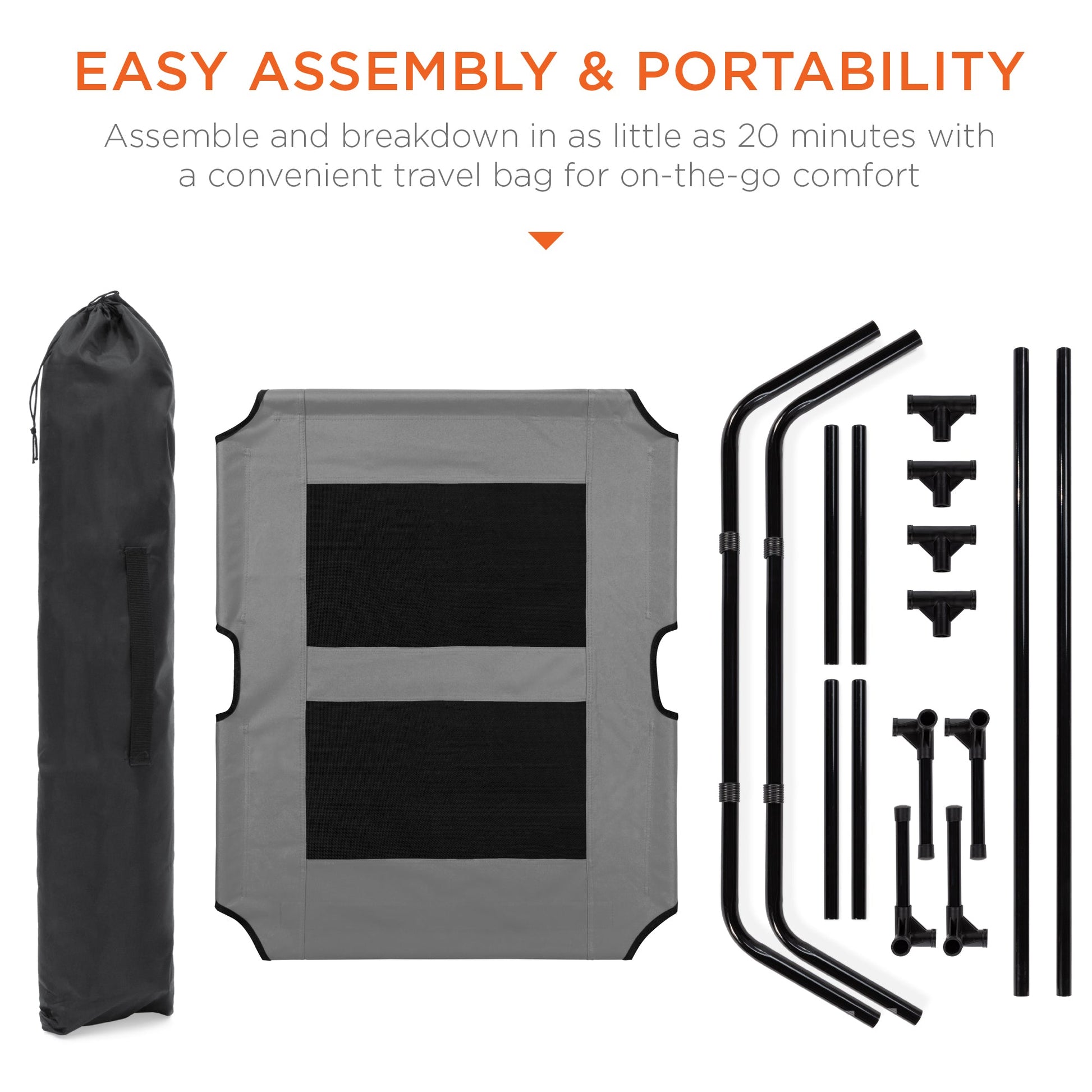 36in Outdoor Raised Cooling Pet Dog Bed w/ Canopy, Travel Bag