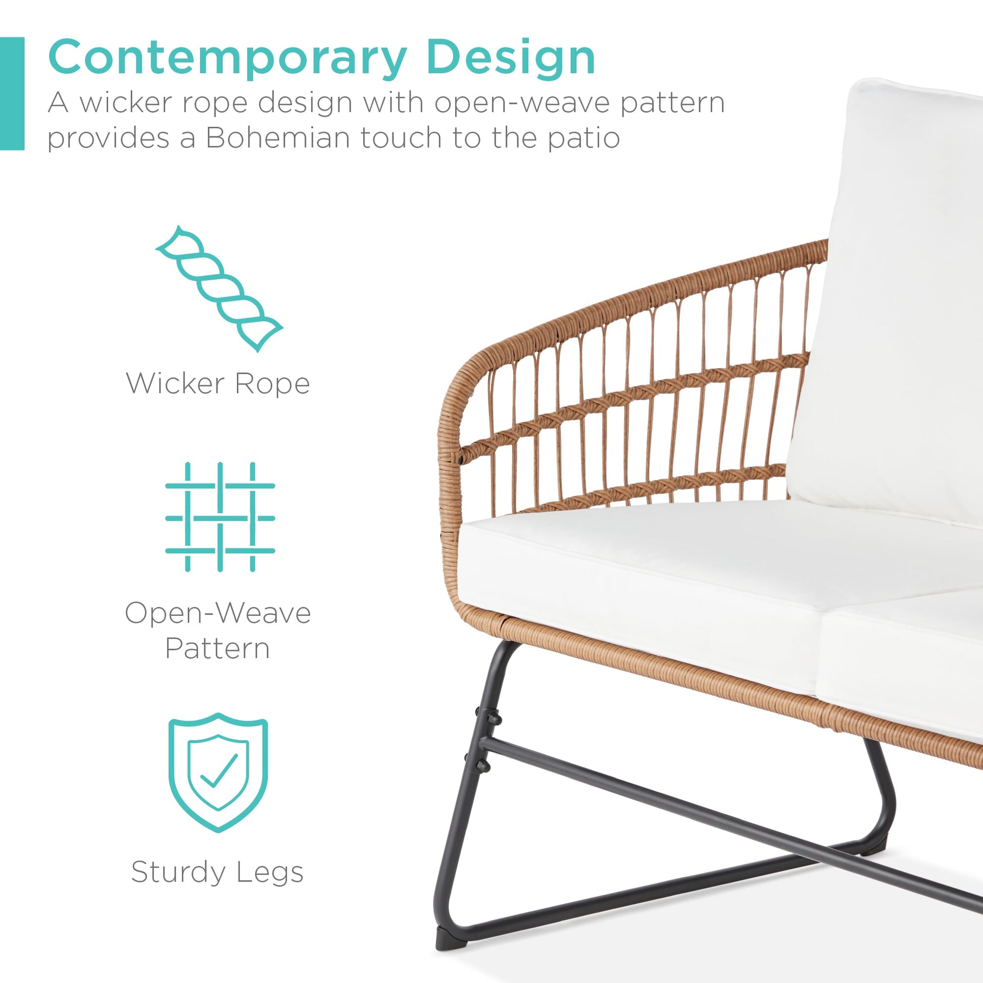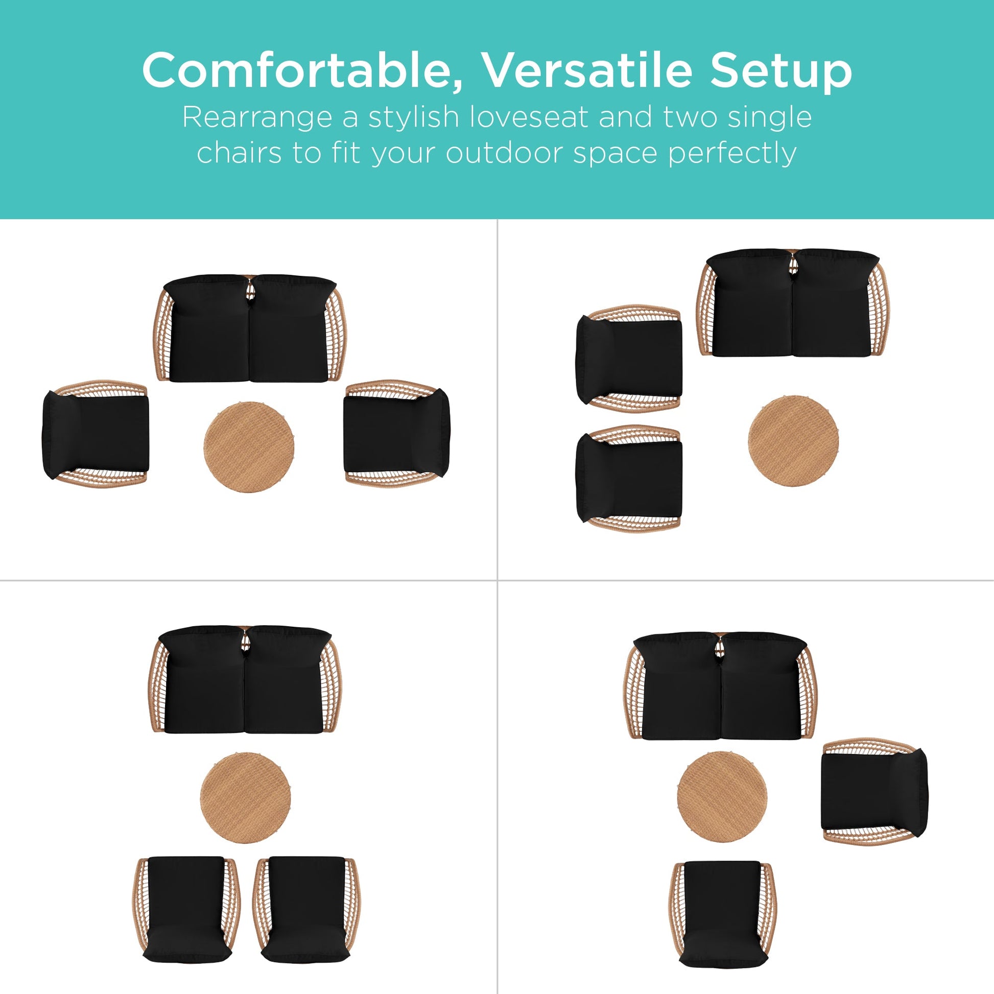 4-Piece Rope Wicker Outdoor Conversation Set w/ Cushions, Table
