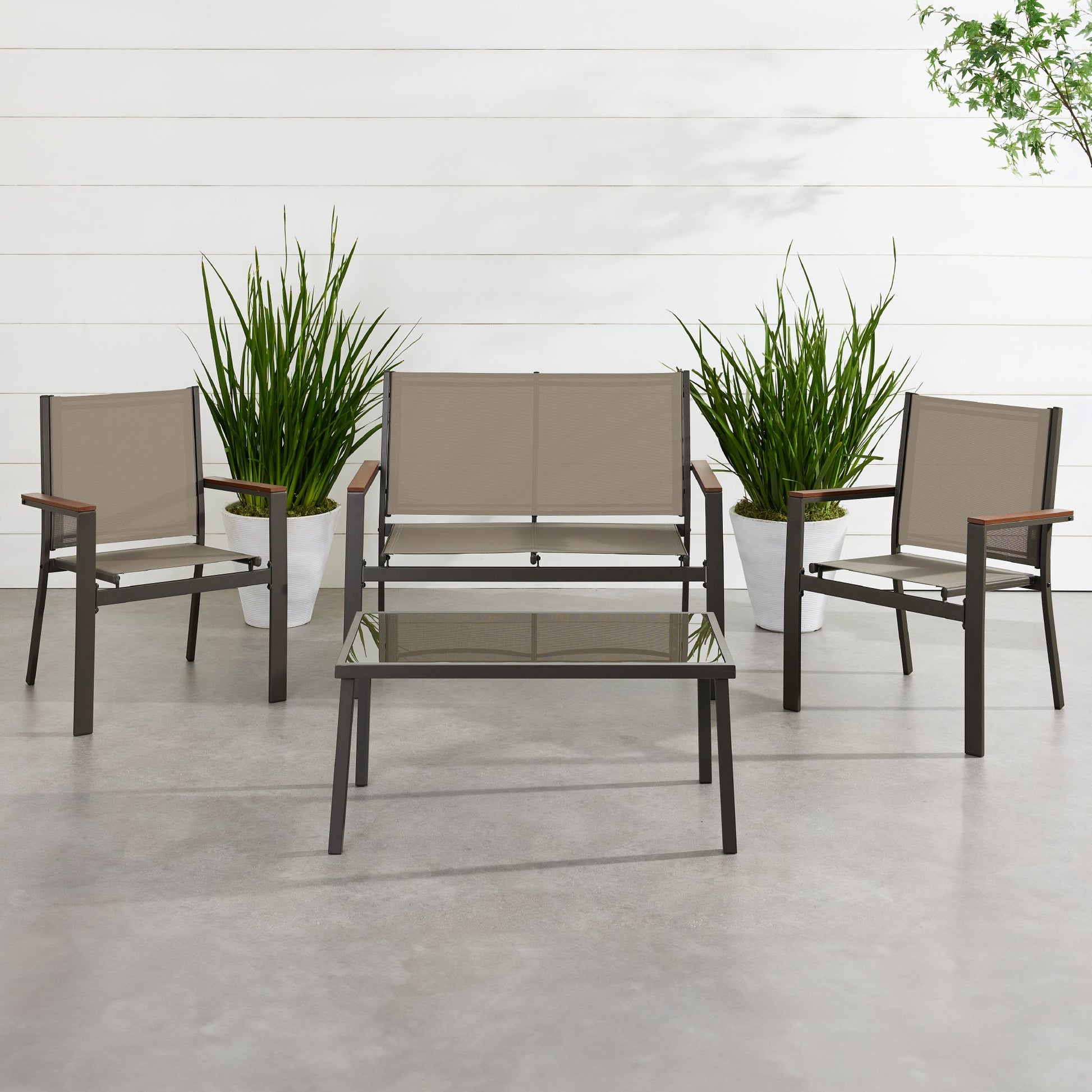 4-Piece Textilene Outdoor Conversation Set w/ Cushions, Table