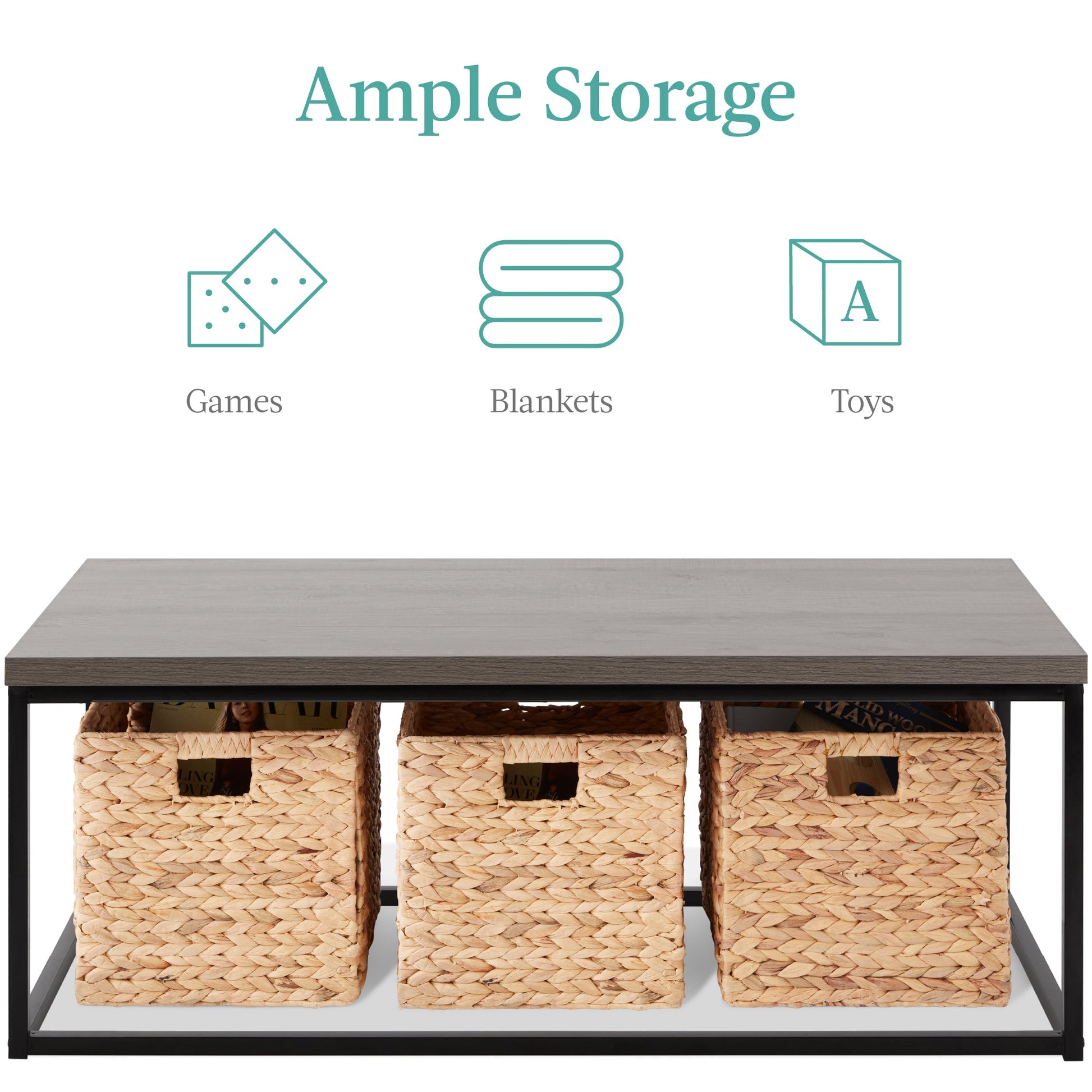 44in Modern Industrial Rectangular Wood Grain Coffee Table w/ Metal Frame