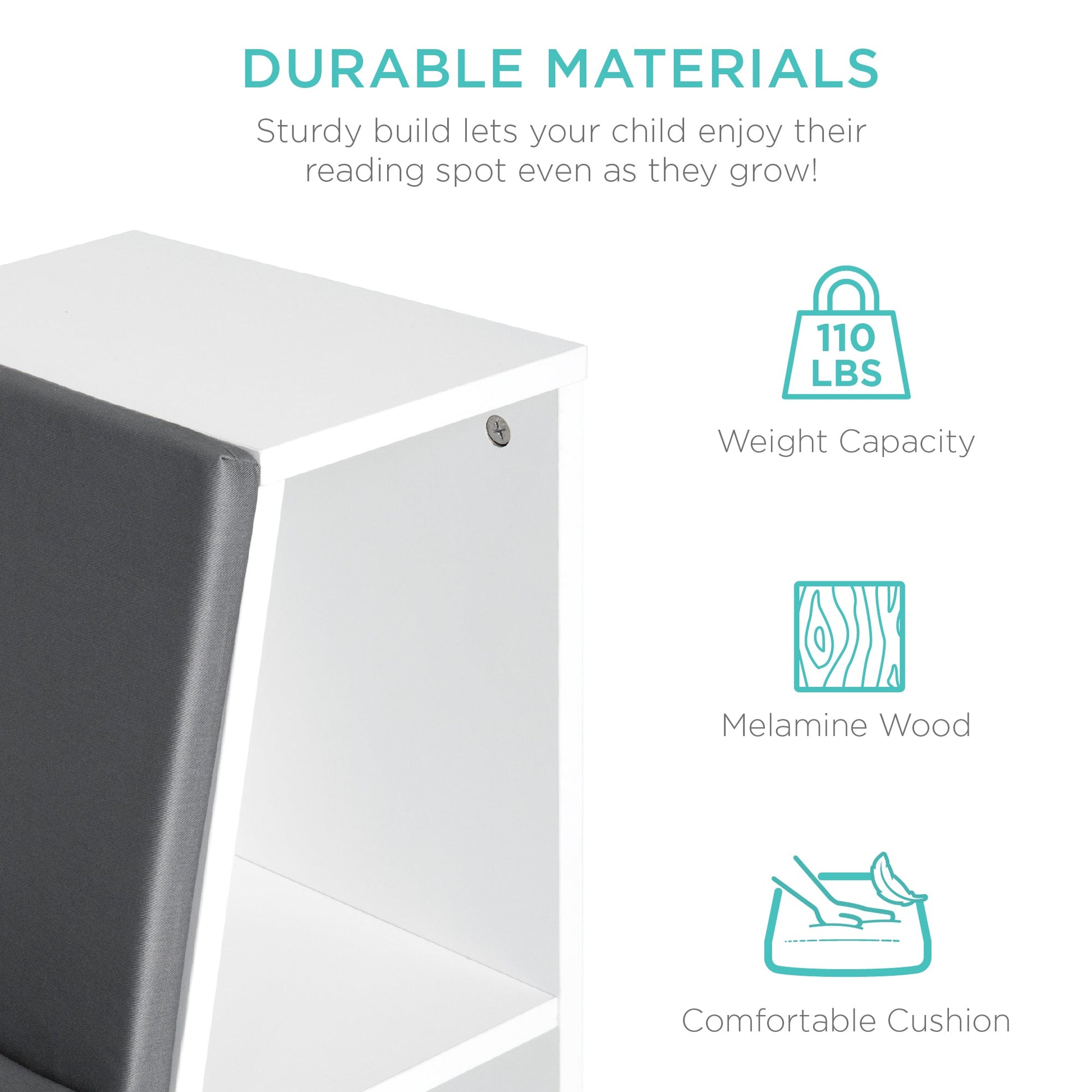 • STYLISH DESIGN: A smooth finish, comfortable cushions, and plenty of space on top for a lamp or pictures make this children's bookshelf the perfect decorative piece for your kid's bedroom