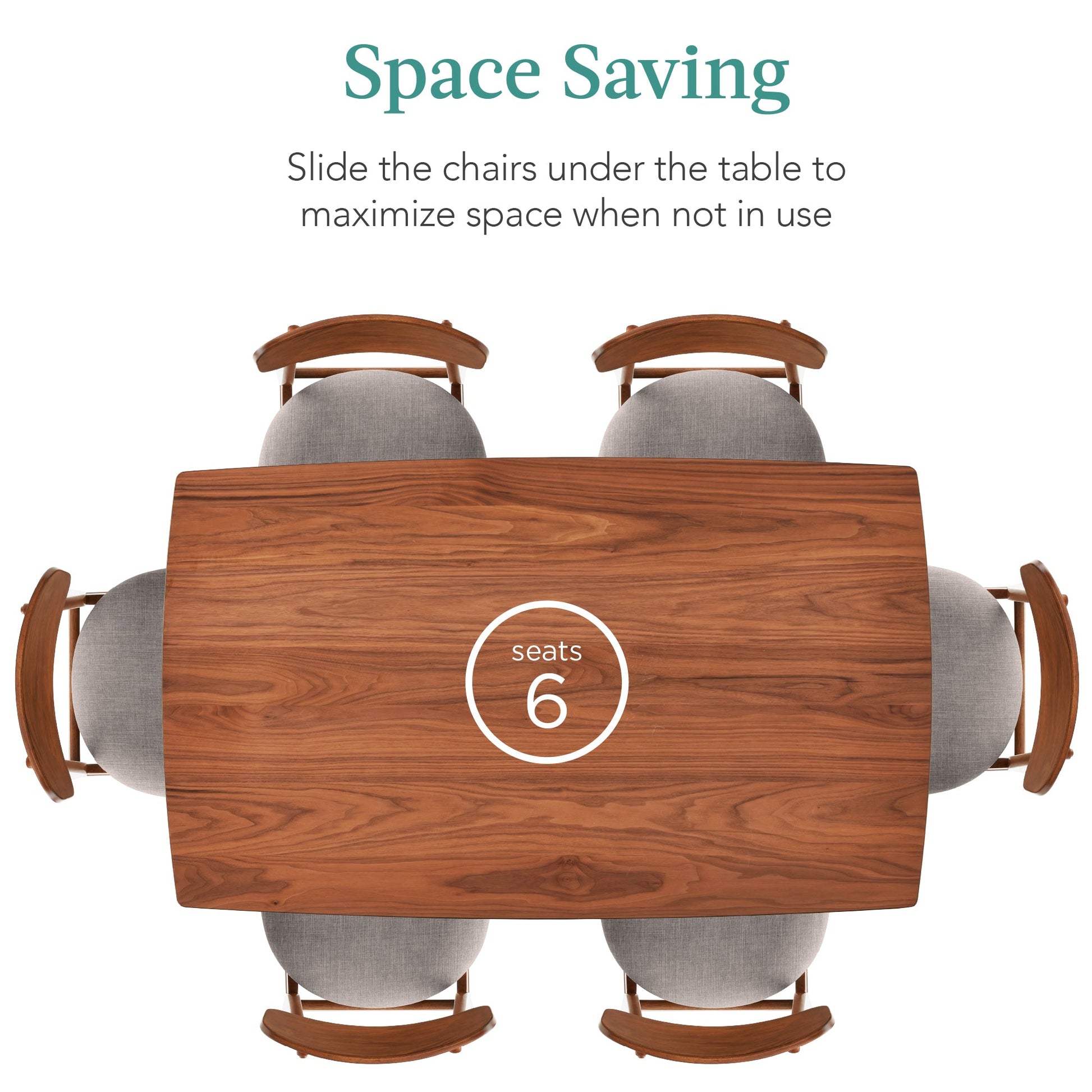 7-Piece Mid-Century Modern Dining Set, Wood Upholstered w/ 6 Chairs