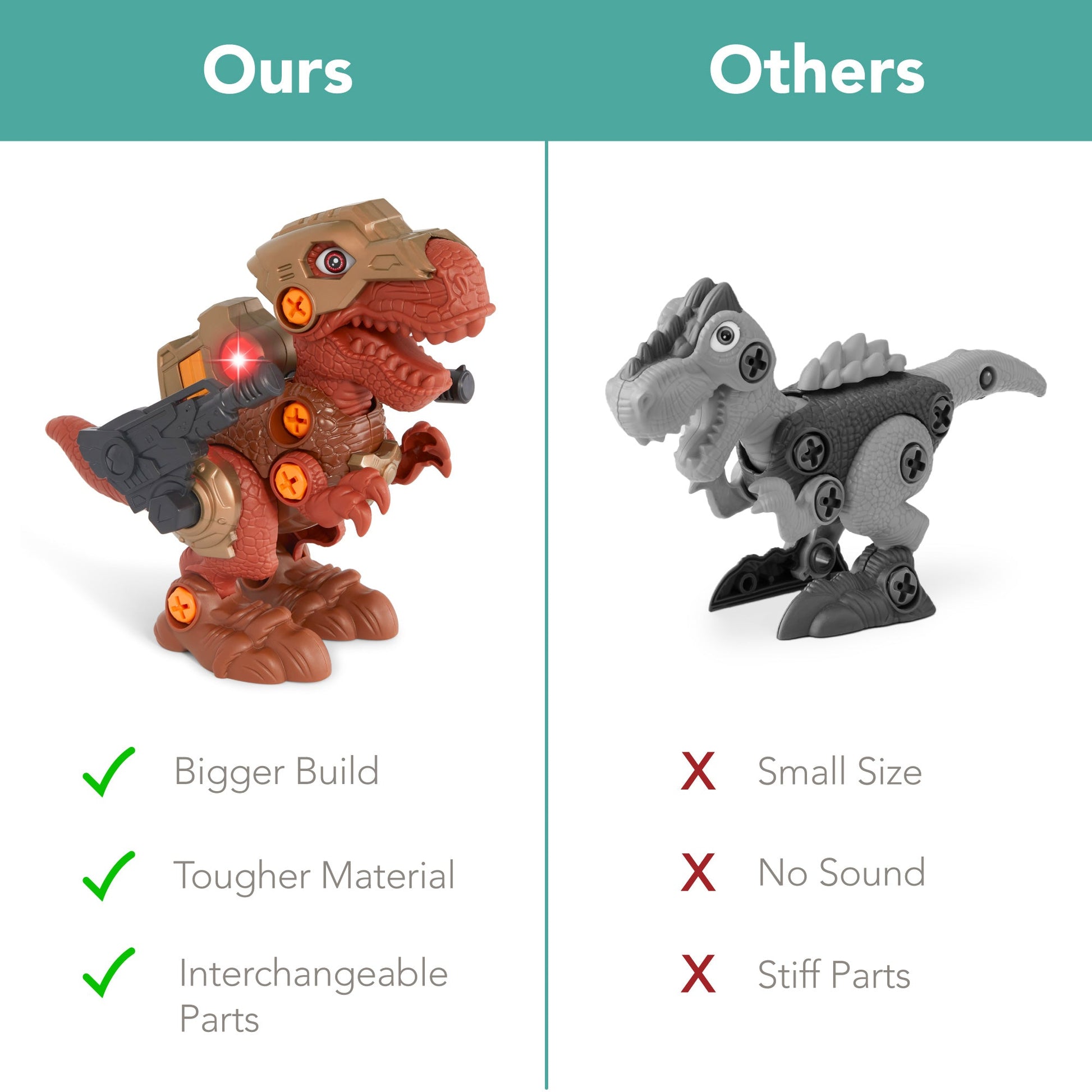 • MOVABLE PARTS: A flexible mouth, head, as well as arms and legs allow you to build your dinosaurs the way you want and make them move how you want too!