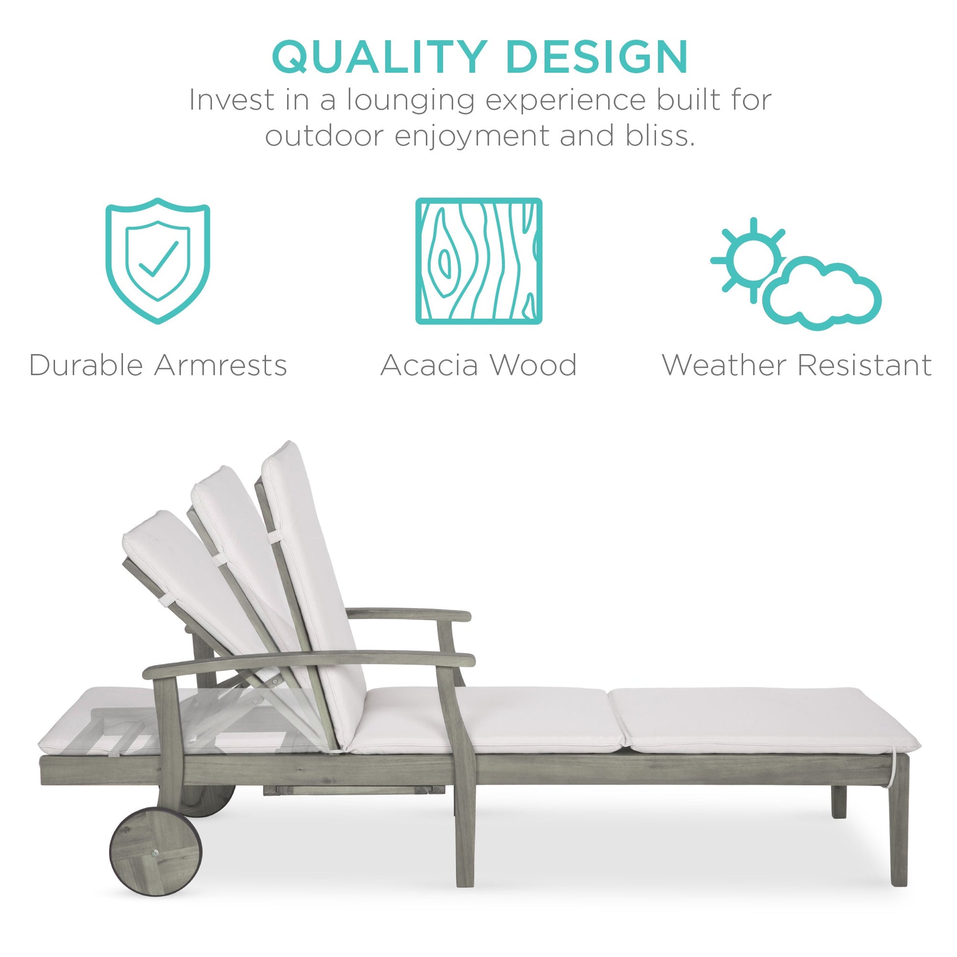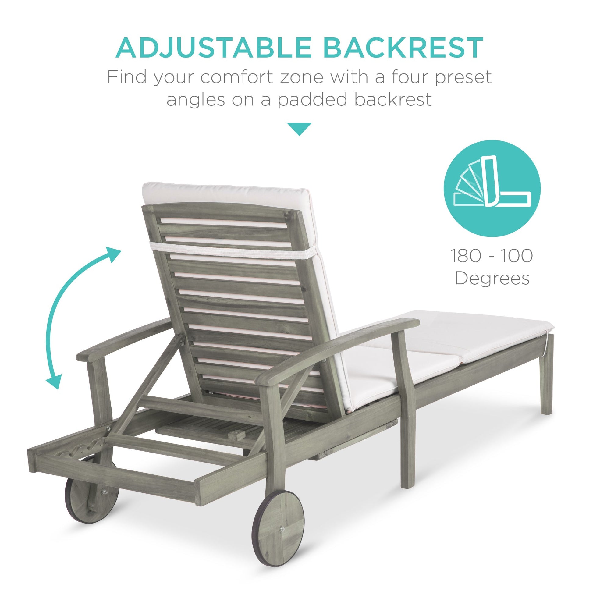 Adjustable Acacia Wood Chaise Lounge Chair w/ Side Table, Wheels - 79x26in