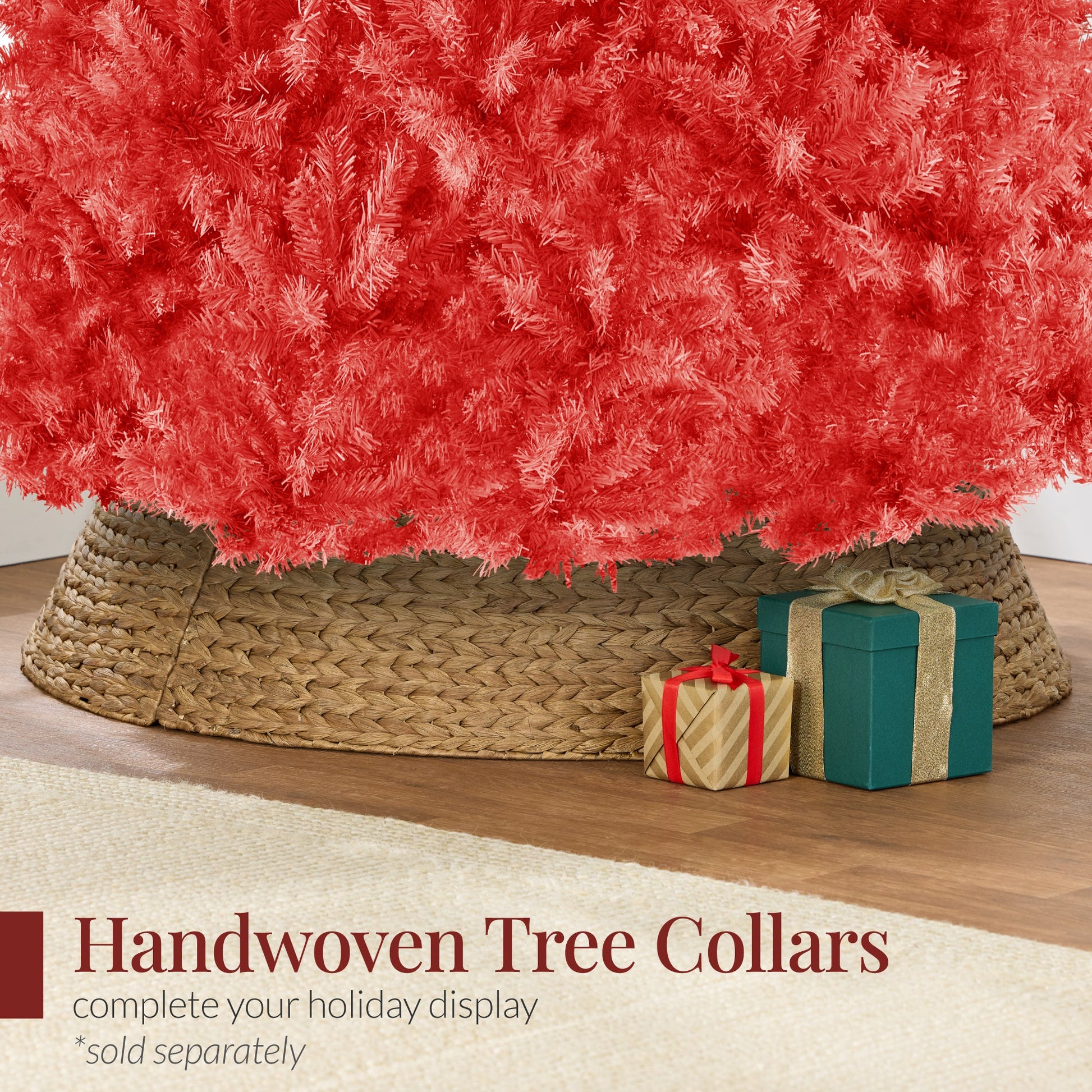 Artificial Red Christmas Tree, Unlit Pine Design w/Easy Assembly