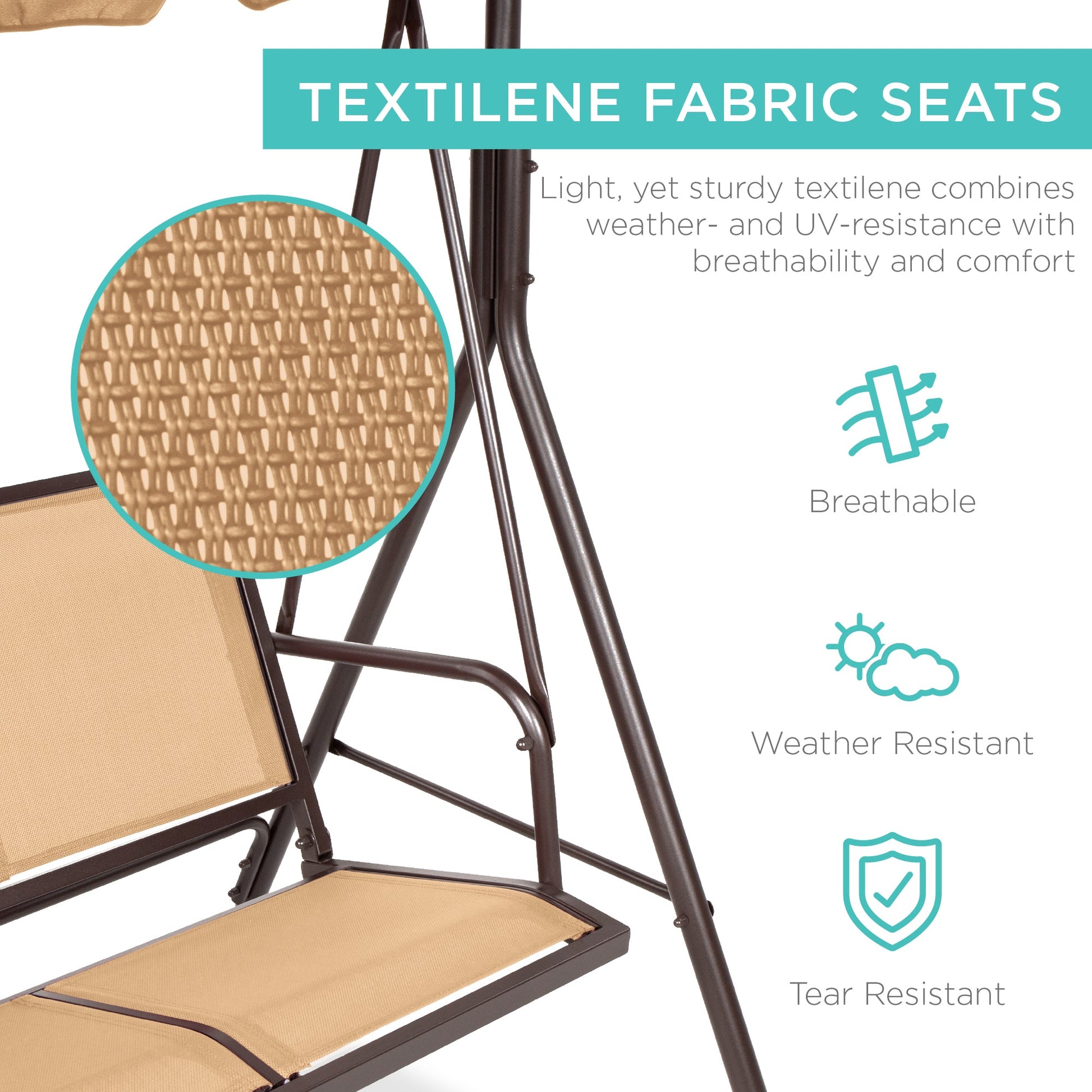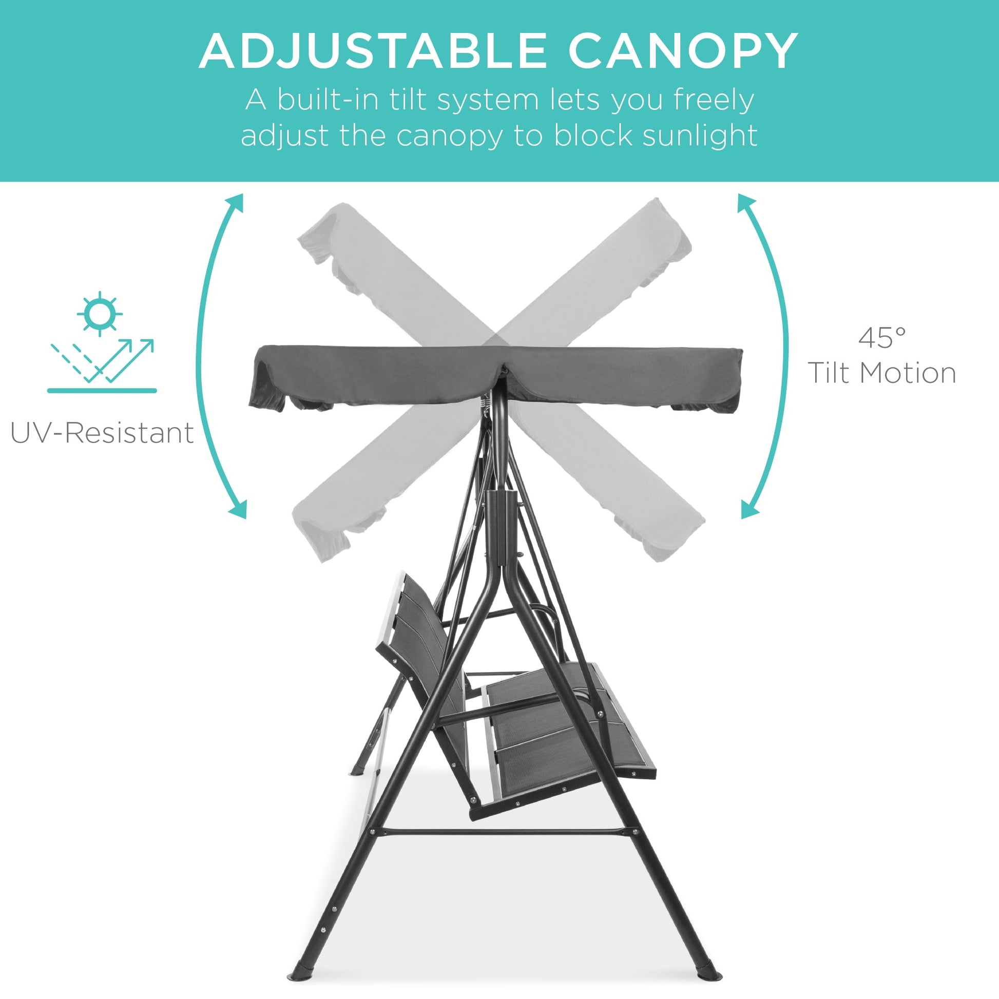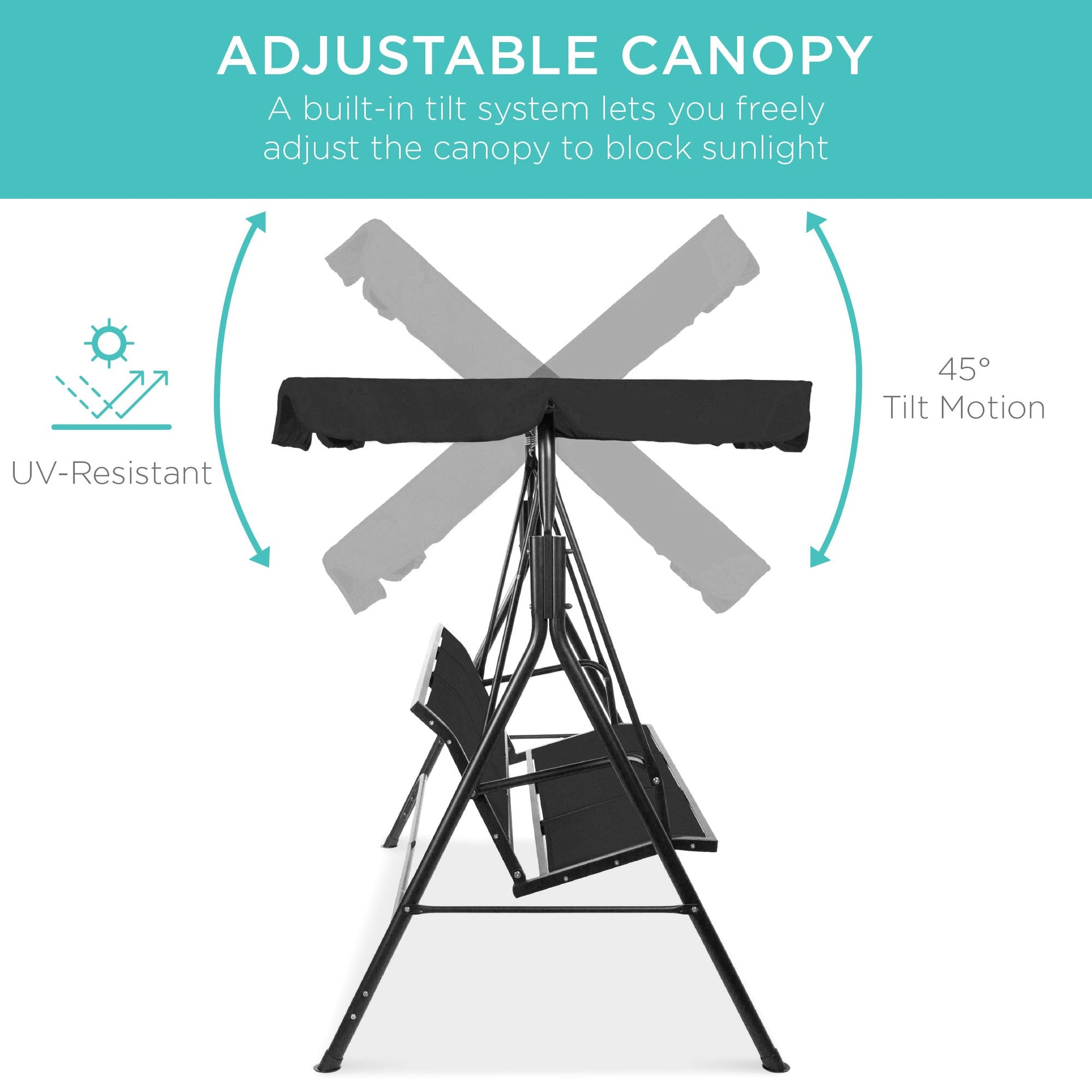 2-Seater Outdoor Canopy Swing Glider Bench w/ Textilene Fabric, Steel Frame