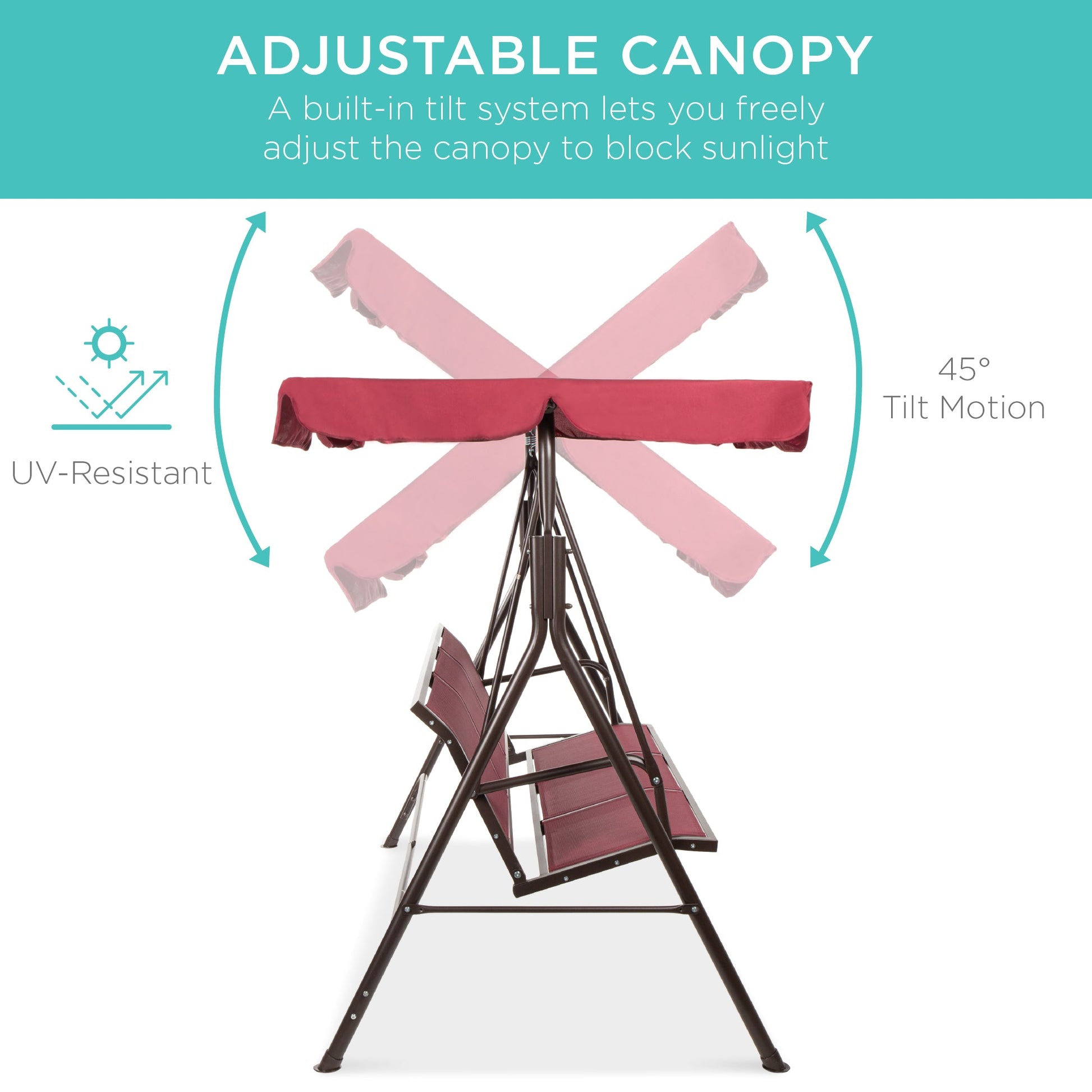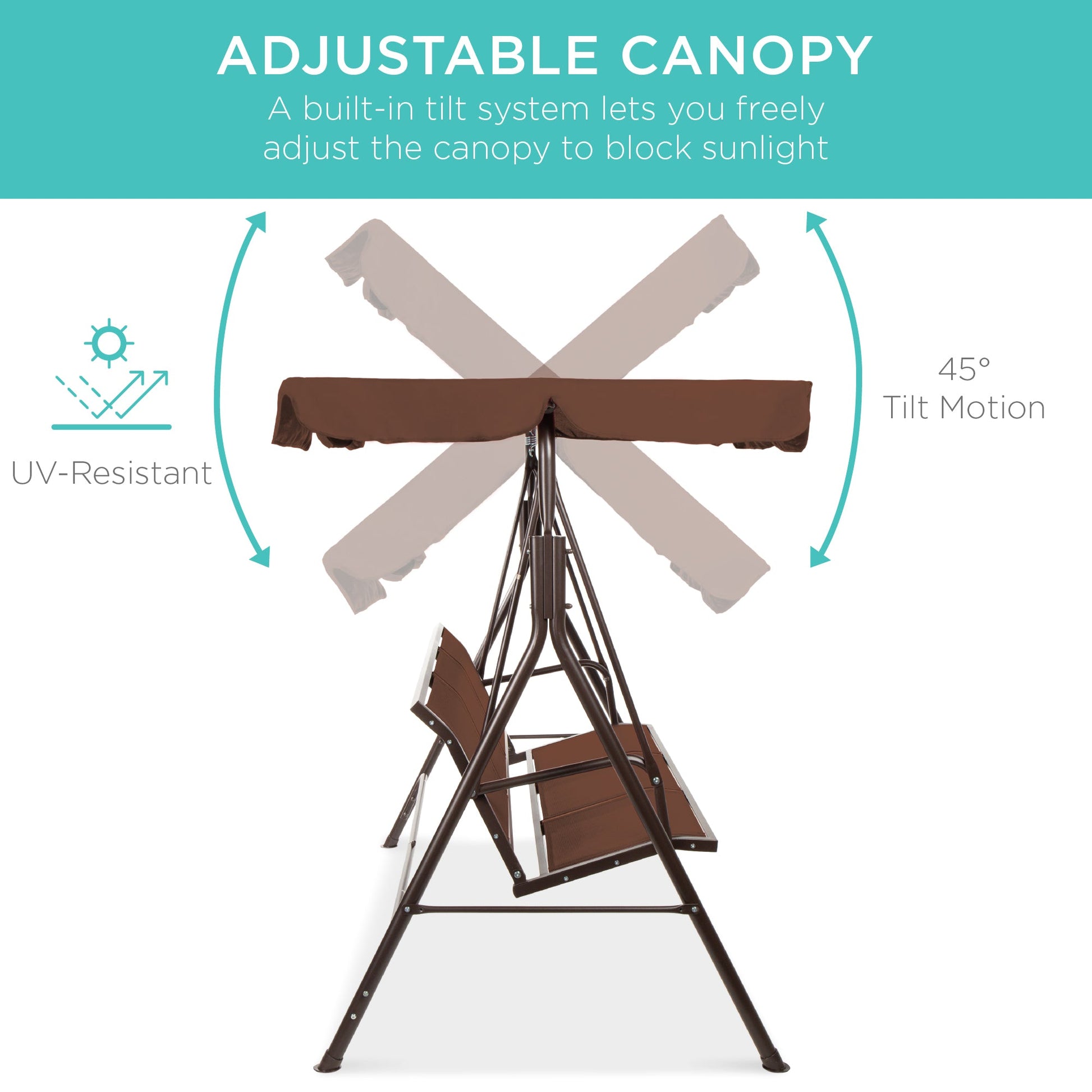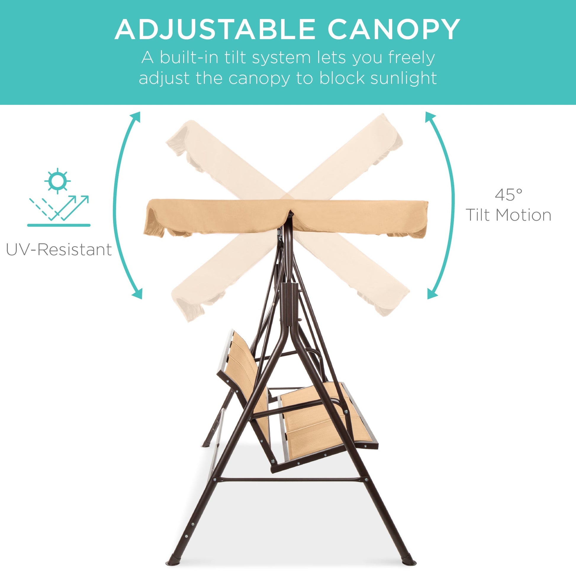 2-Seater Outdoor Canopy Swing Glider Bench w/ Textilene Fabric, Steel Frame