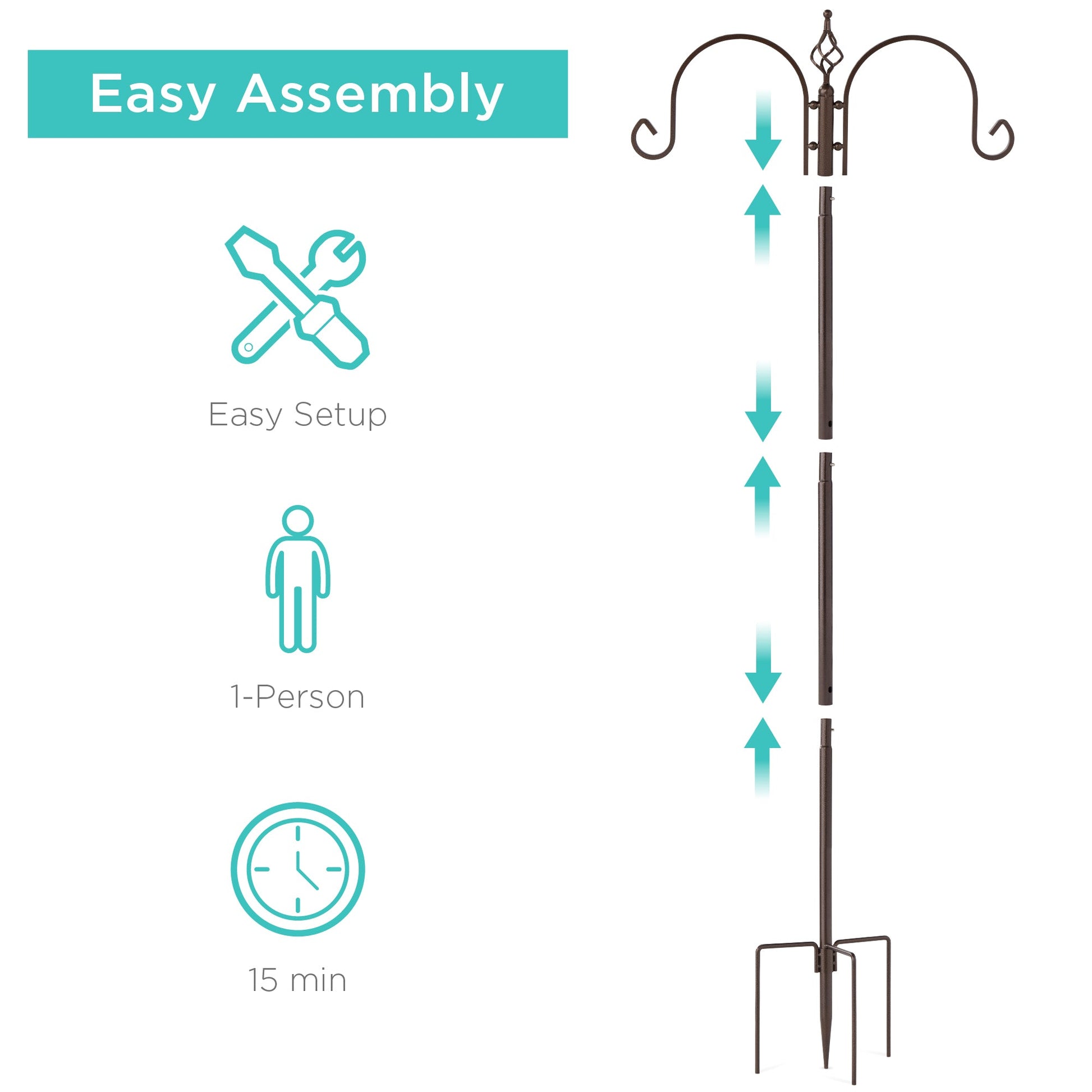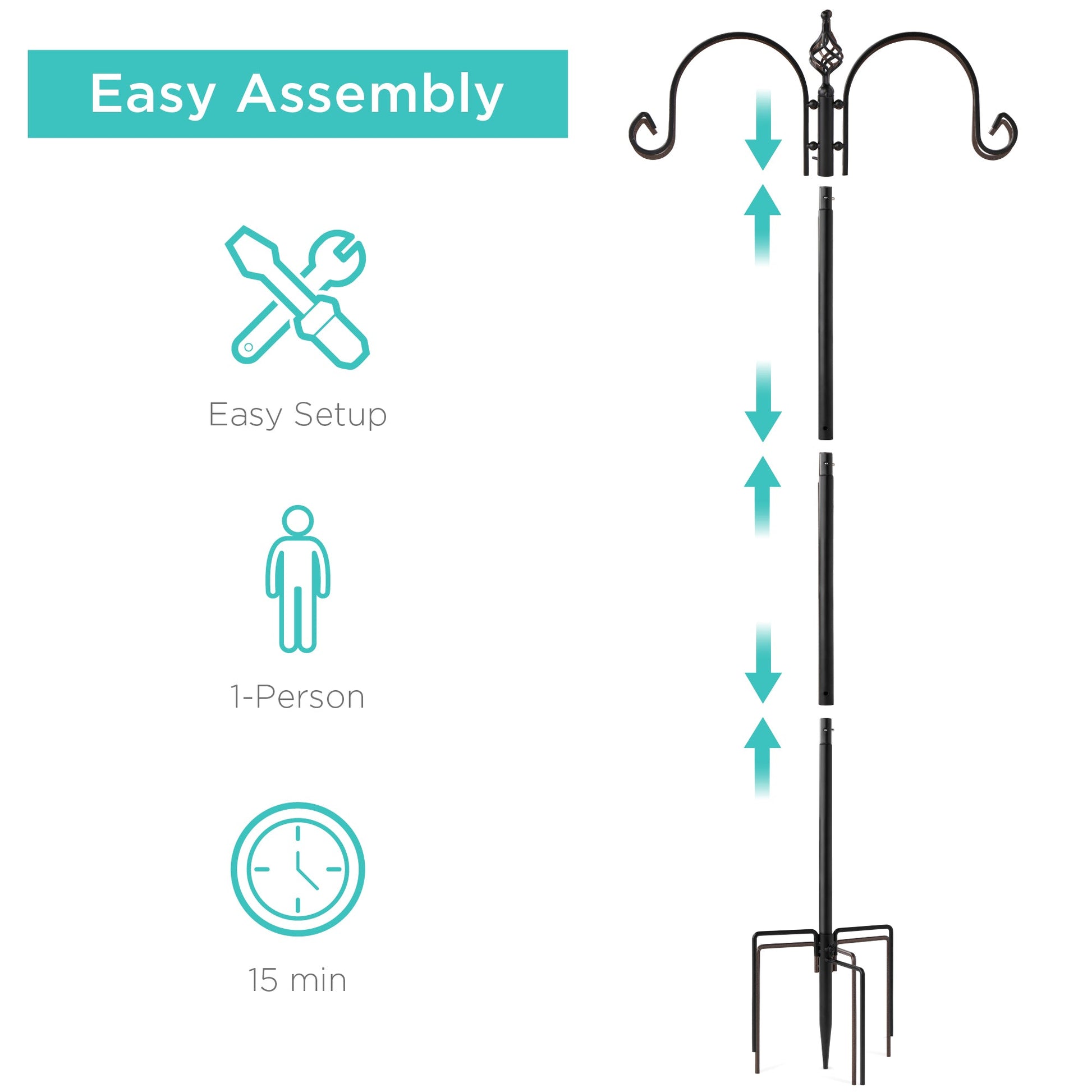 4-Hook Bird Feeding Station, Steel Feeder Stand w/ 2 Bird Feeders - 91in