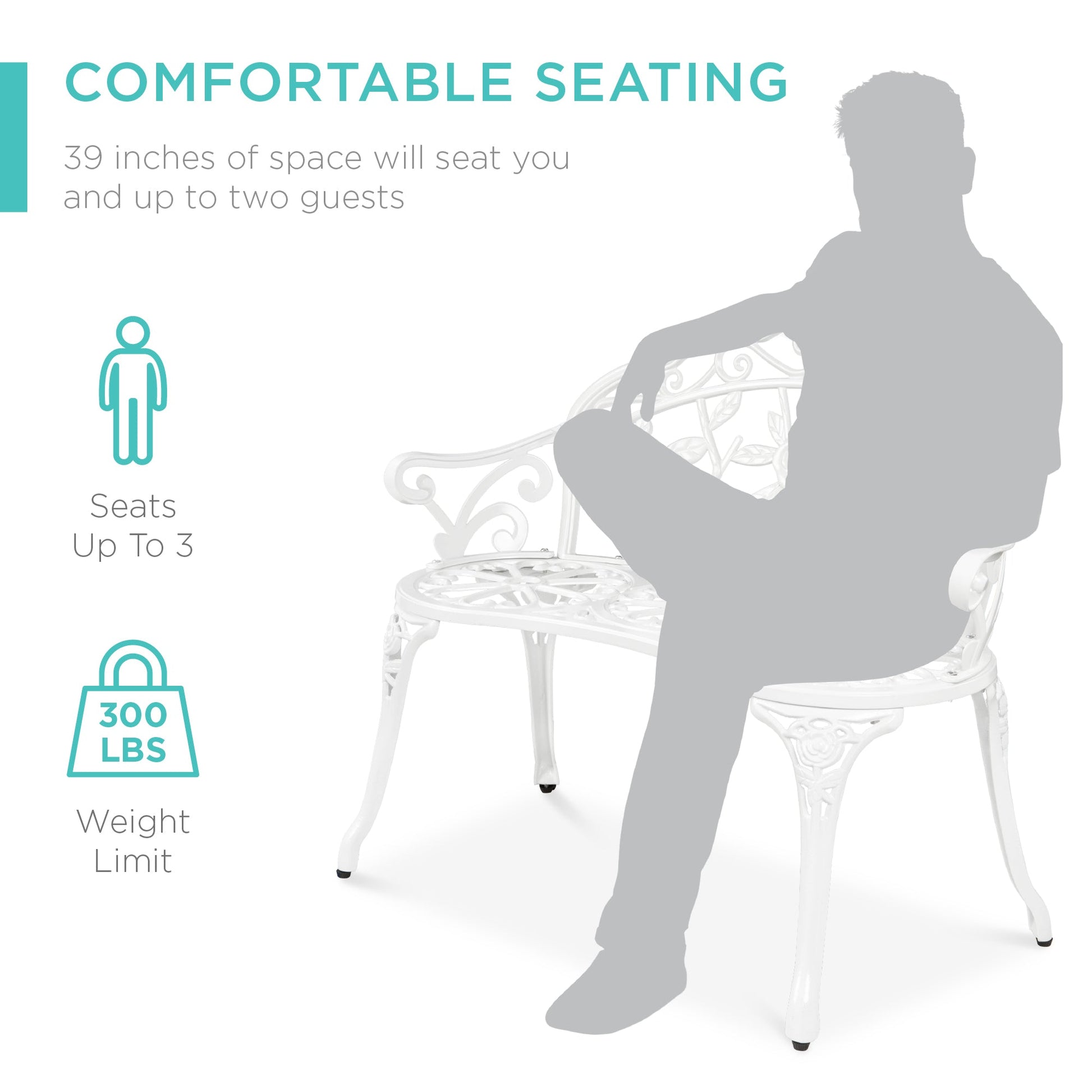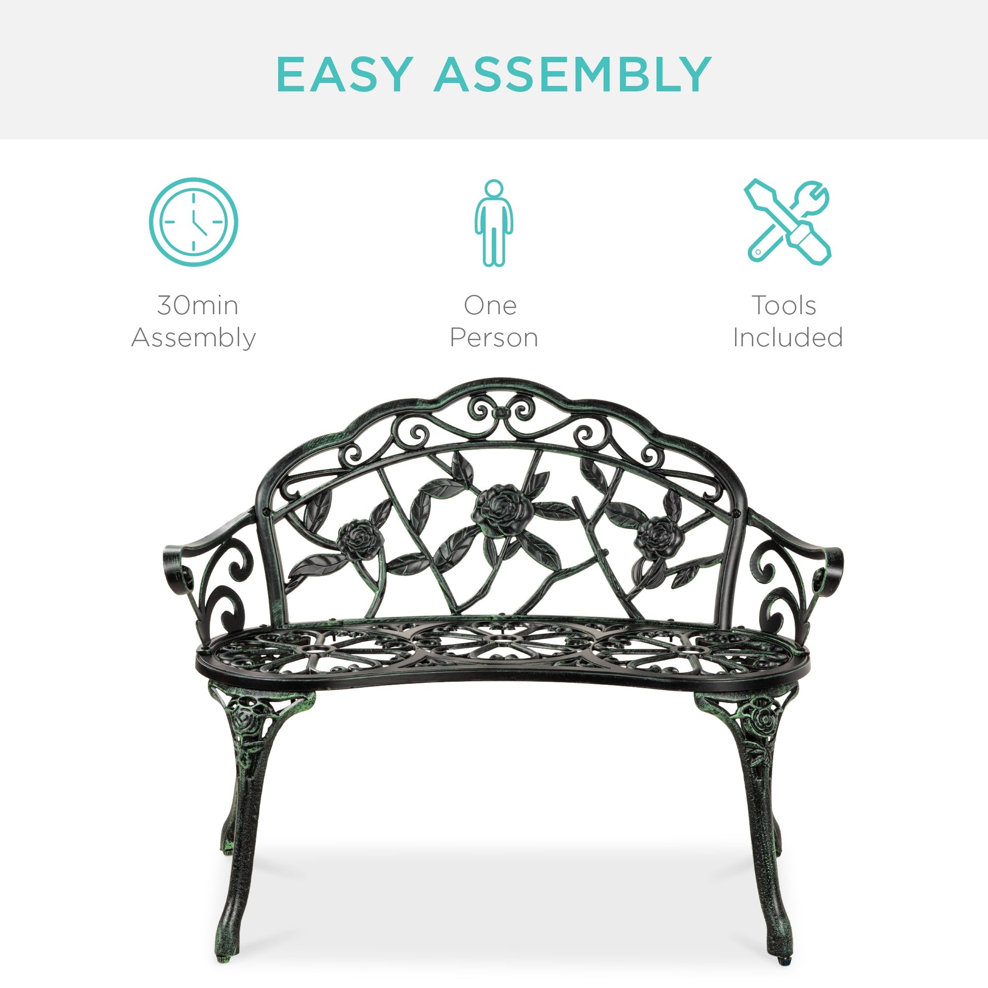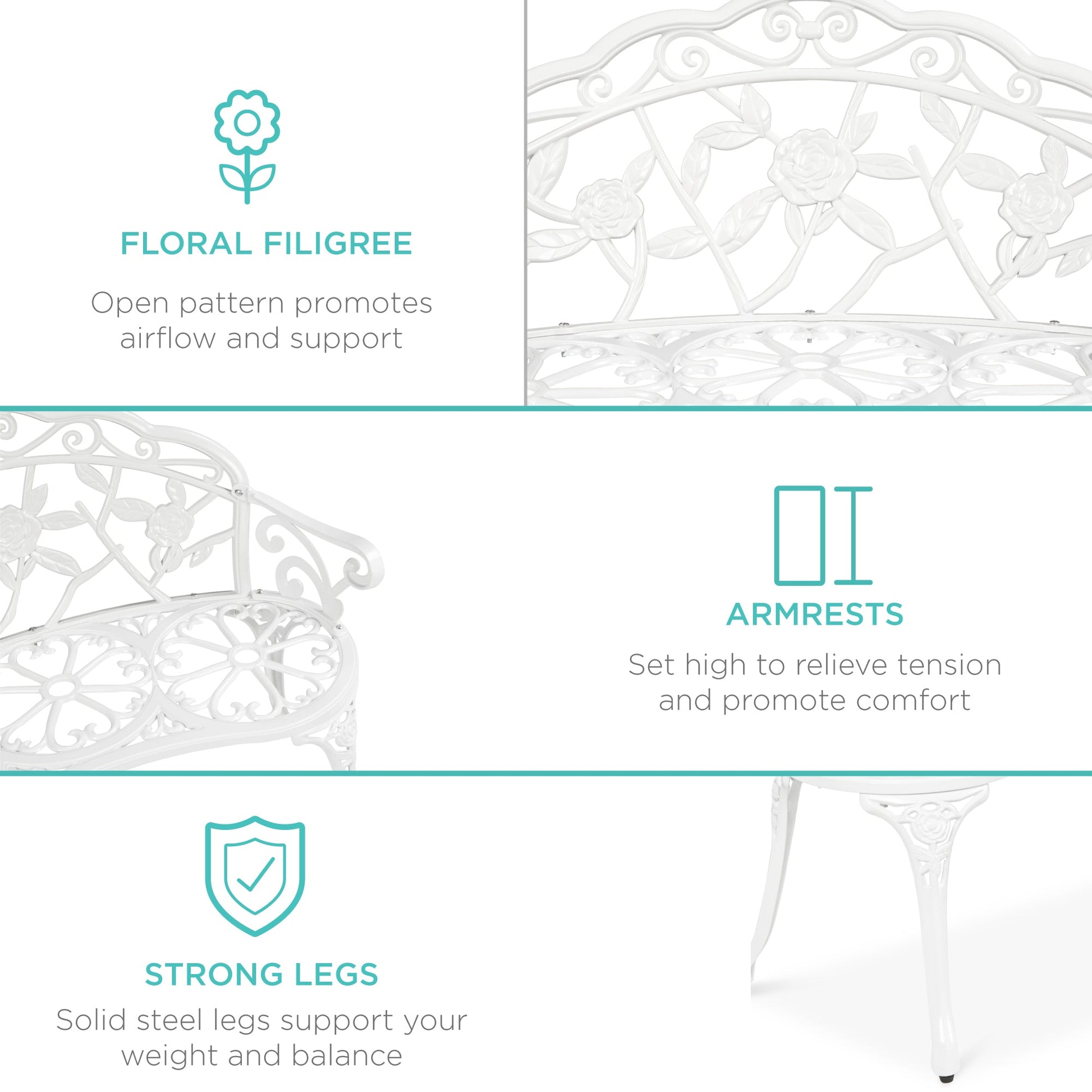Steel Garden Bench Outdoor Patio Furniture w/ Floral Rose Accent - 39in