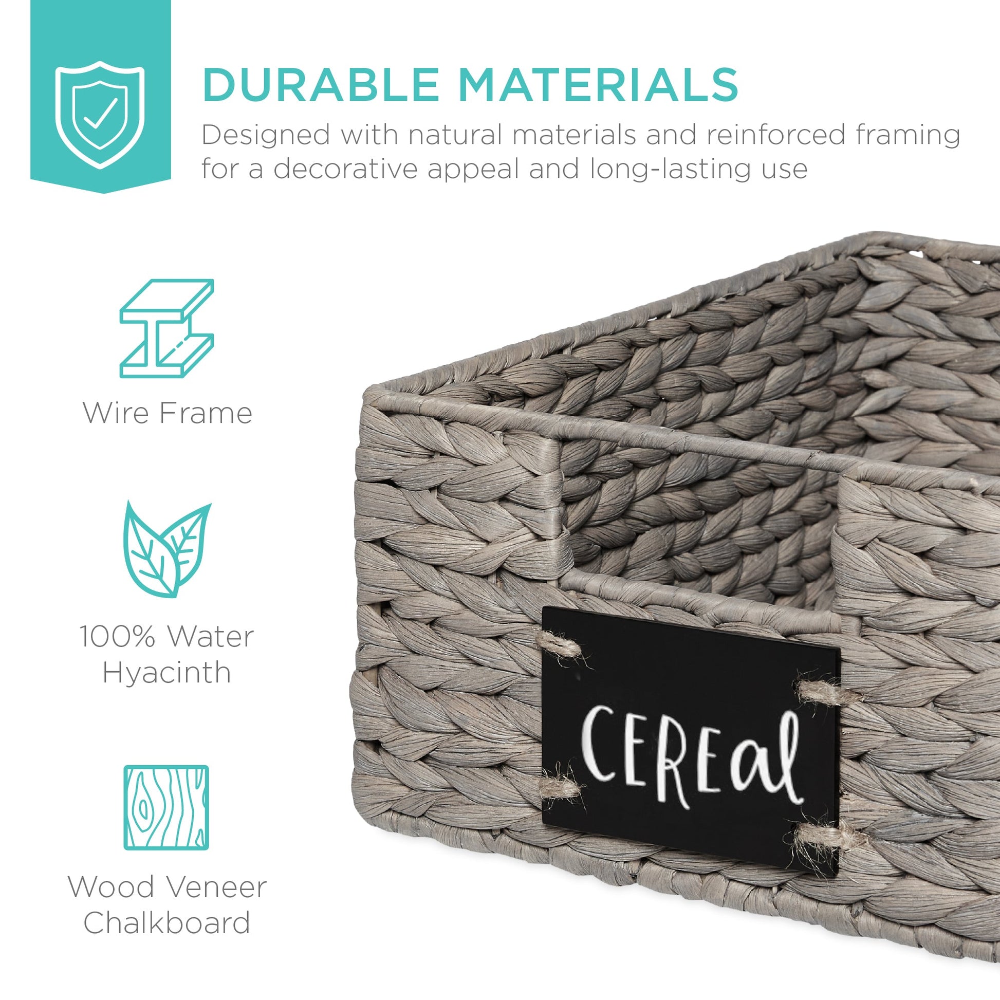 Set of 4 Water Hyacinth Pantry Baskets w/ Chalkboard, Marker - 12in