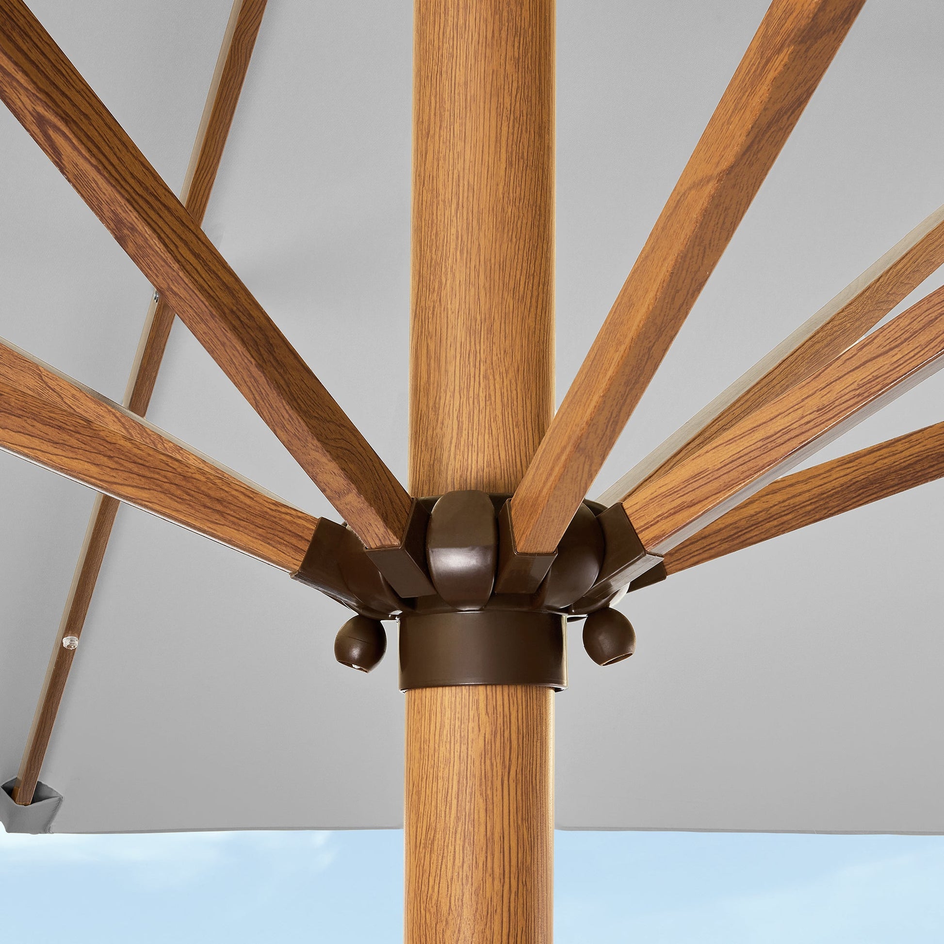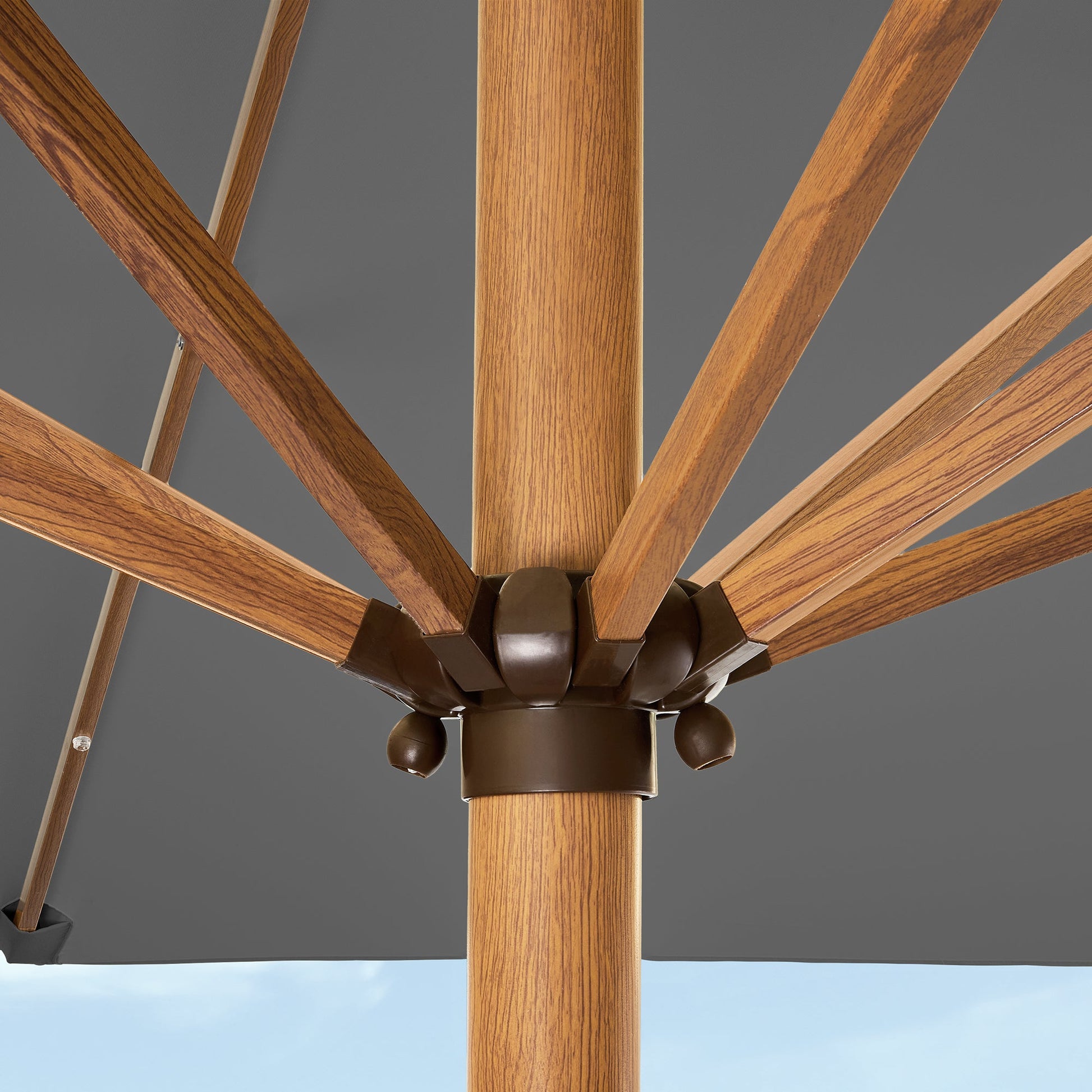 Square Solar LED Lighted Patio Umbrella w/ Woodgrain Pattern - 9ft