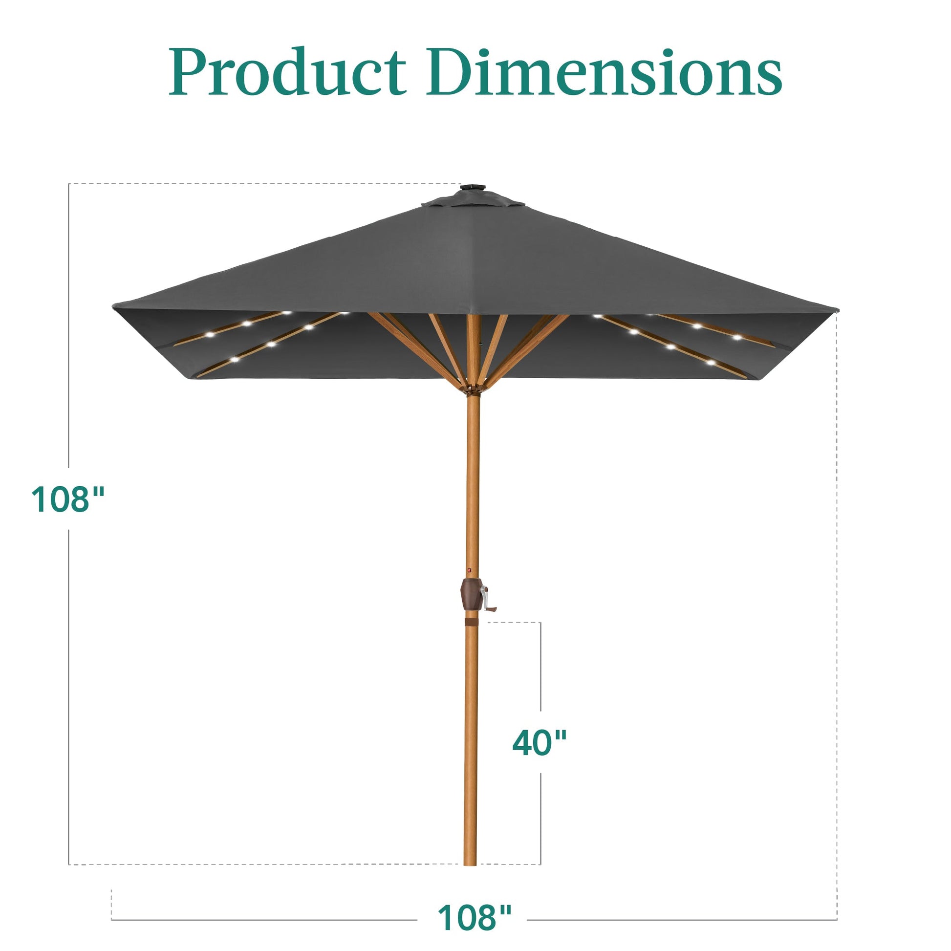 • 28 SOLAR-POWERED LIGHTS: Enjoy this umbrella day or night as an integrated solar panel stores energy throughout the day to provide 6-7 hours of continuous light