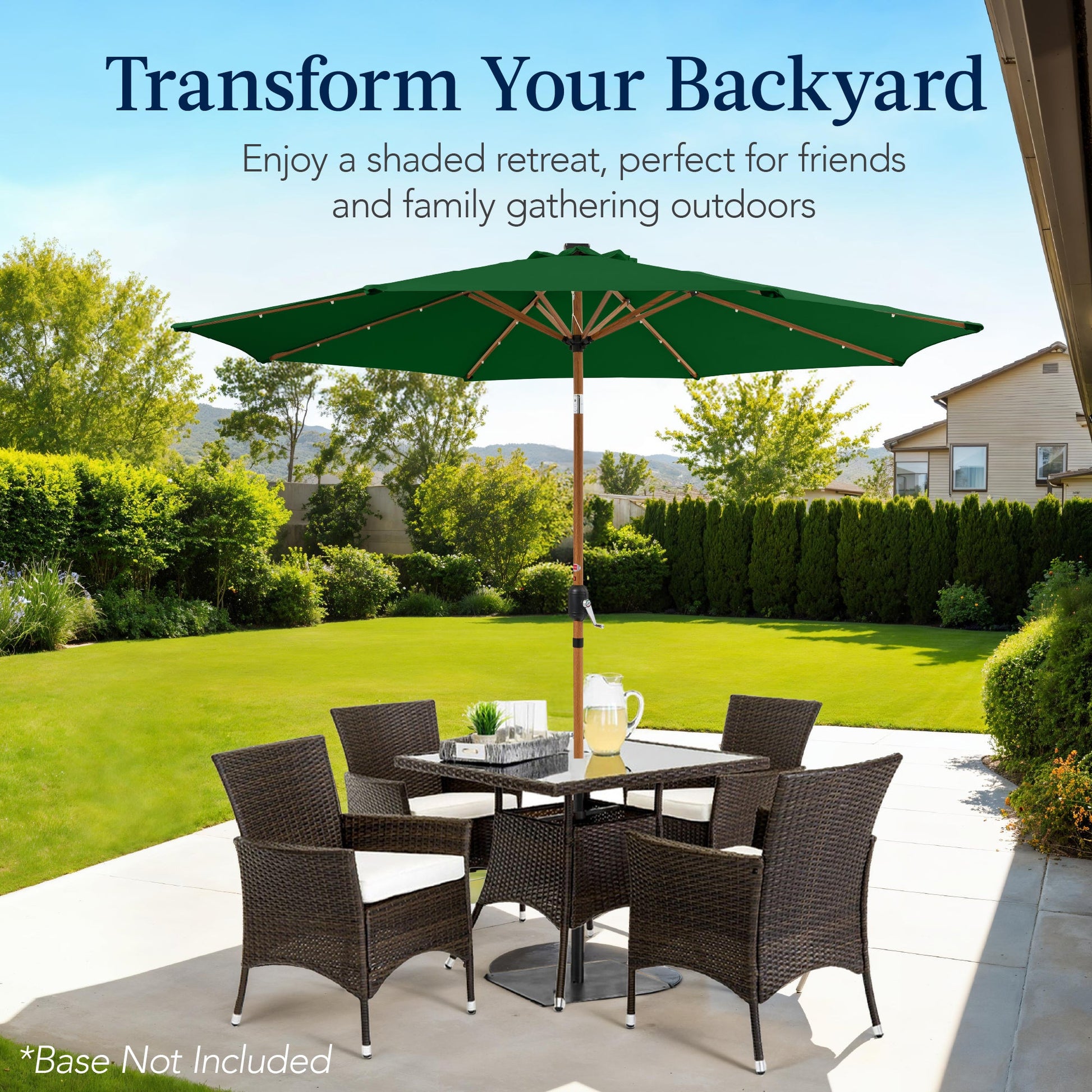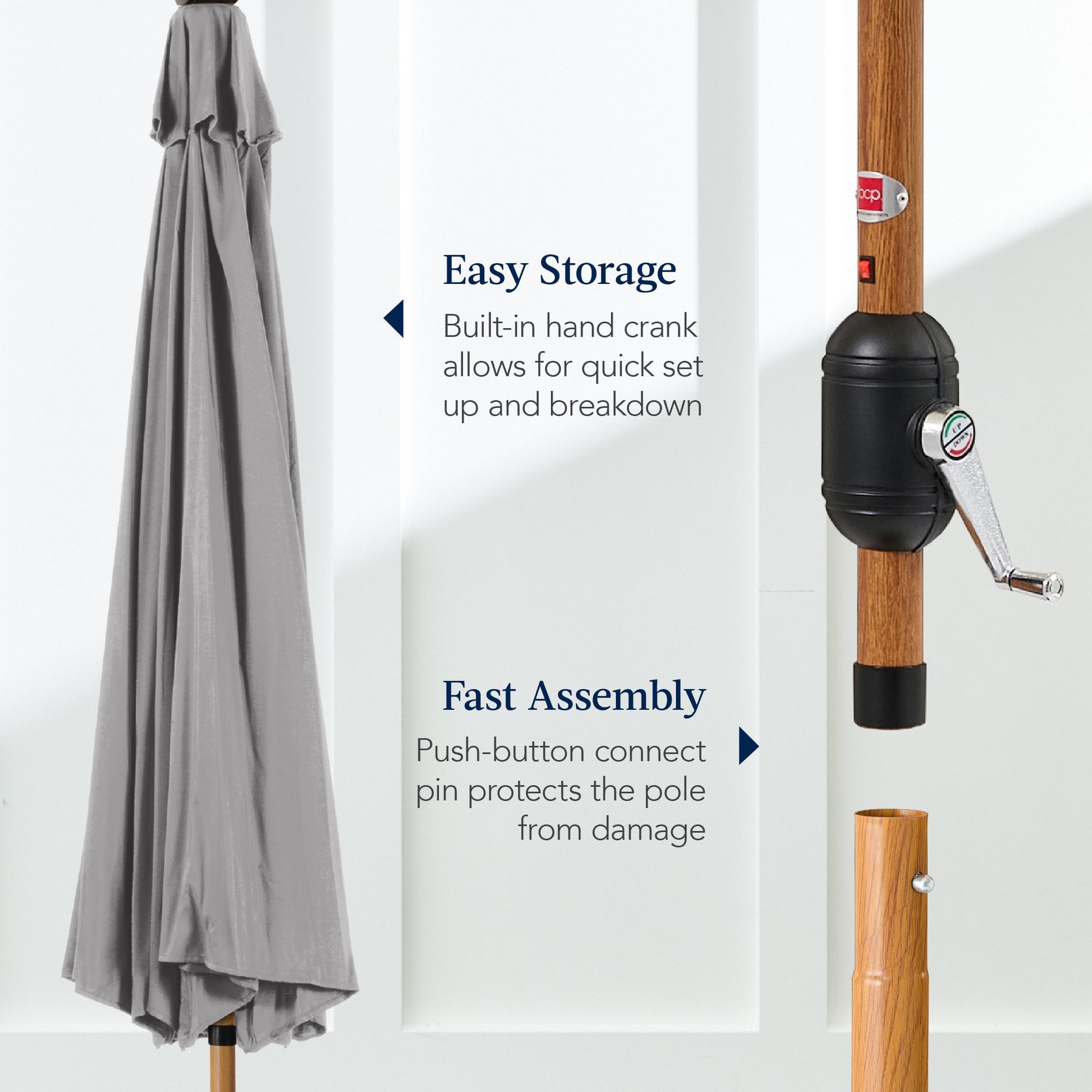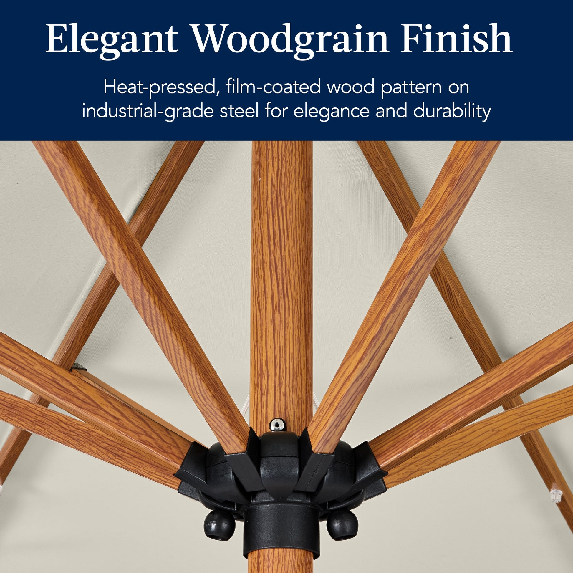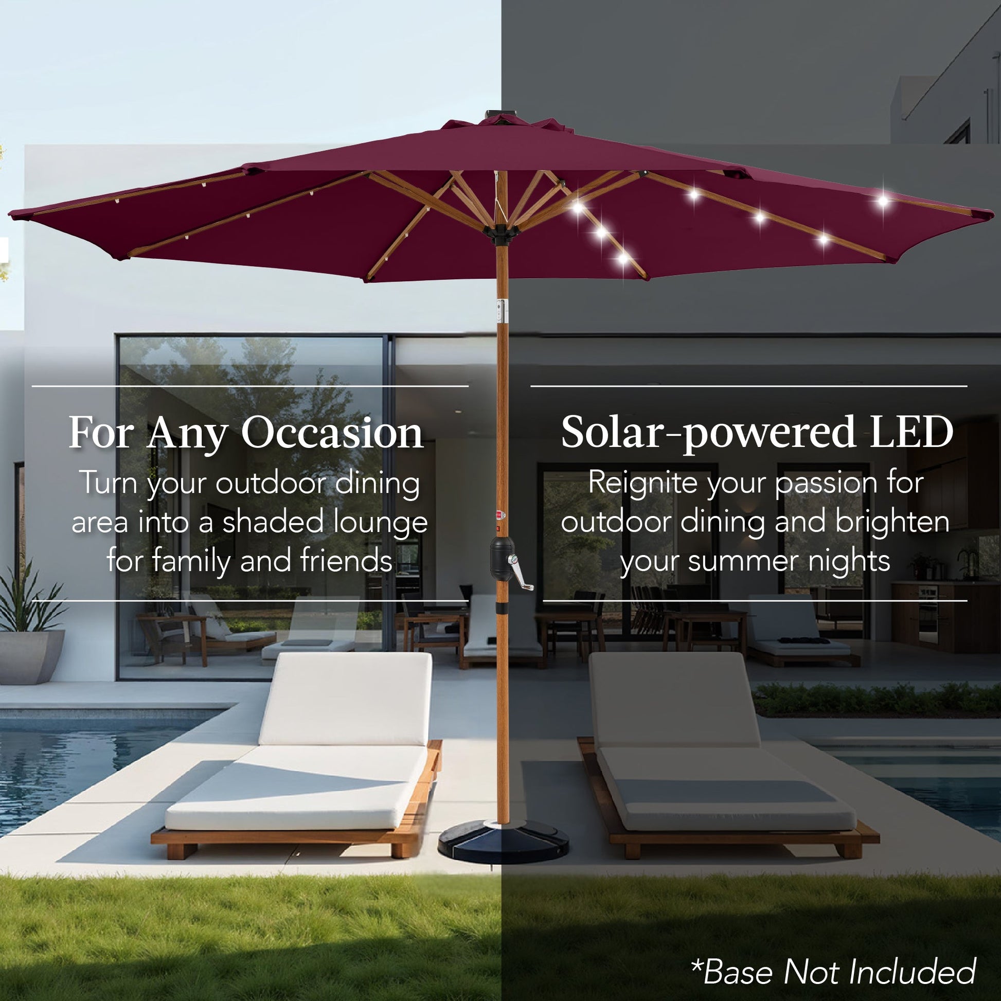Woodgrain Pattern Solar LED Lighted Patio Umbrella w/ Adjustable Tilt - 10ft