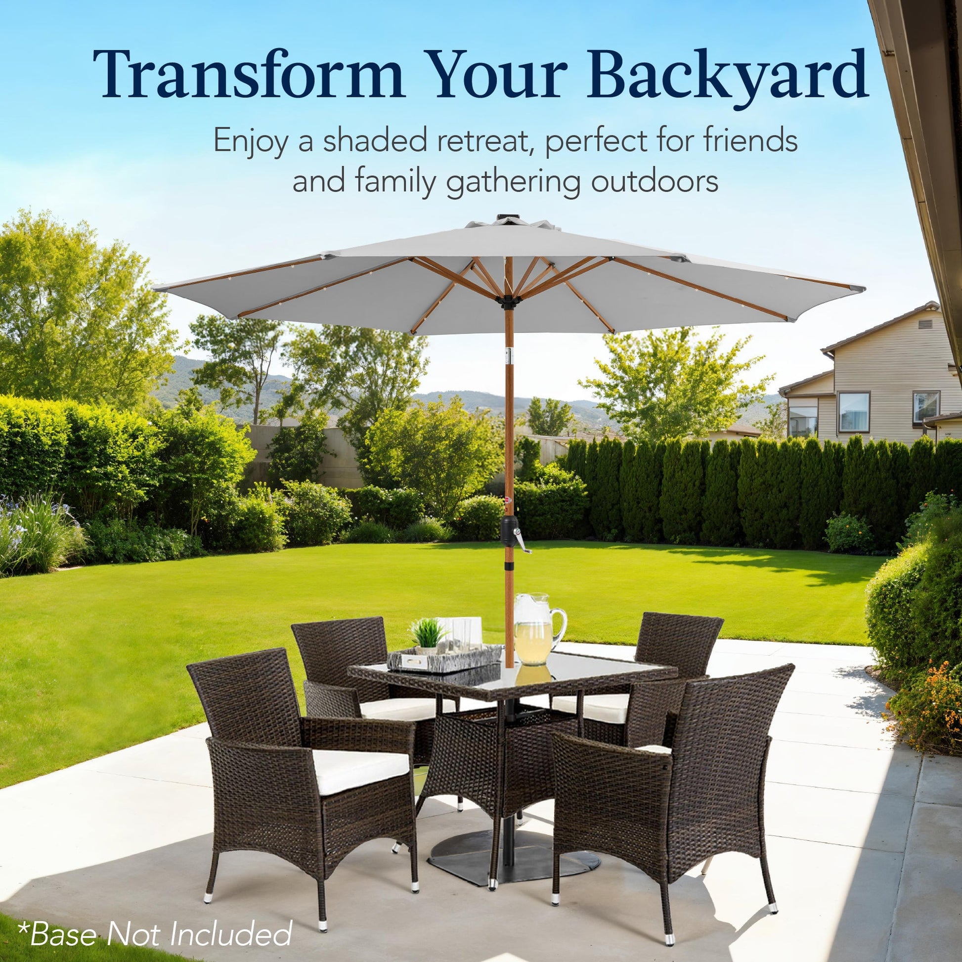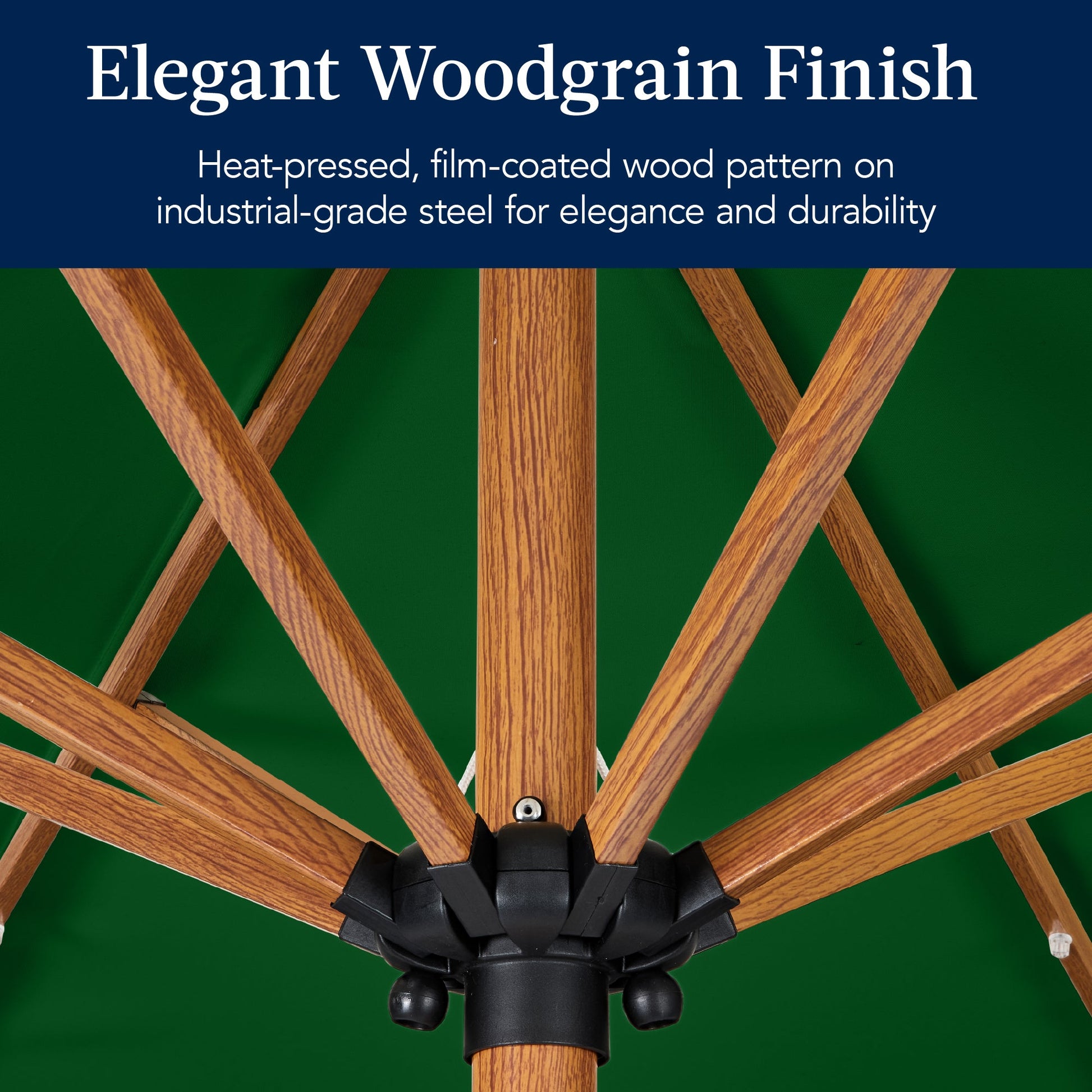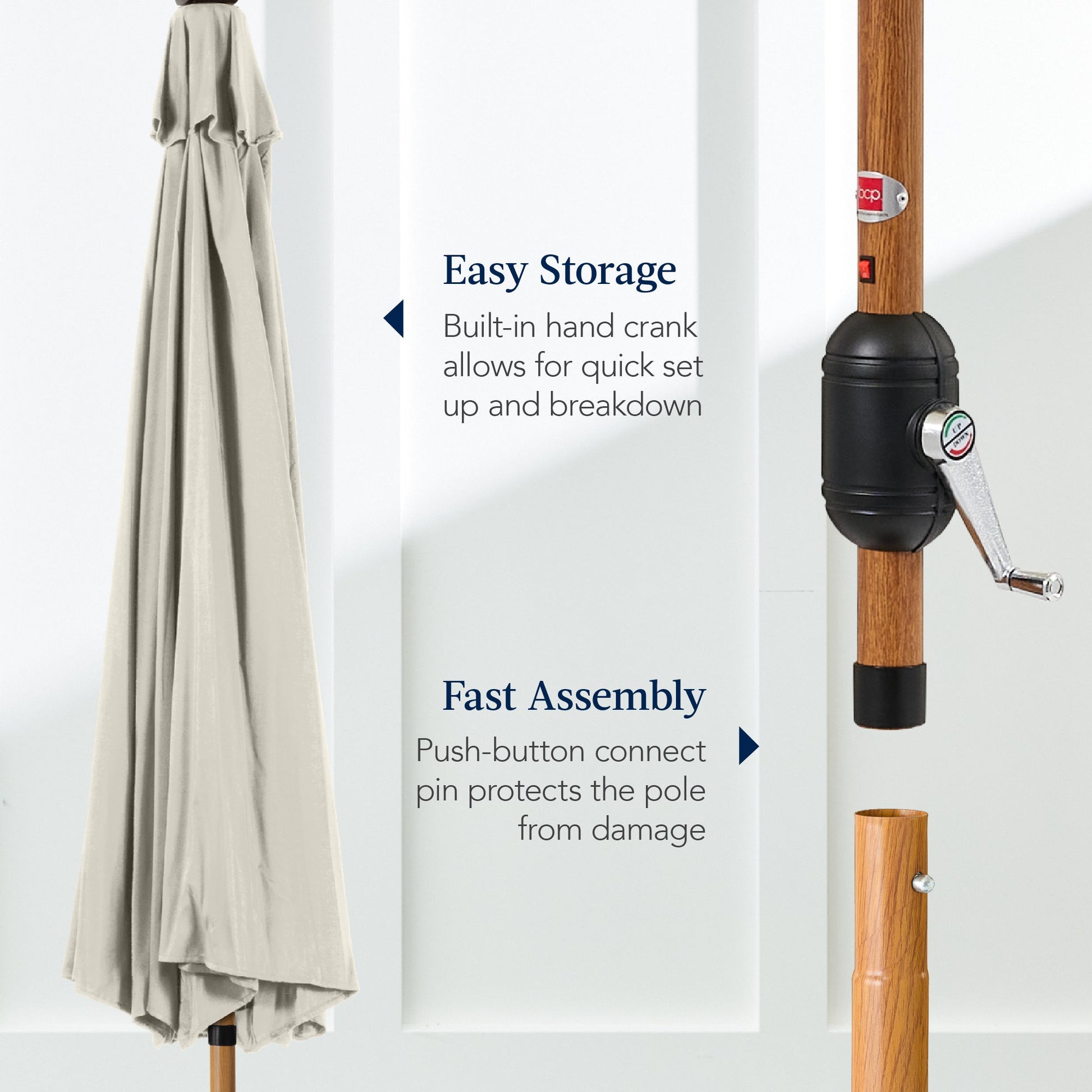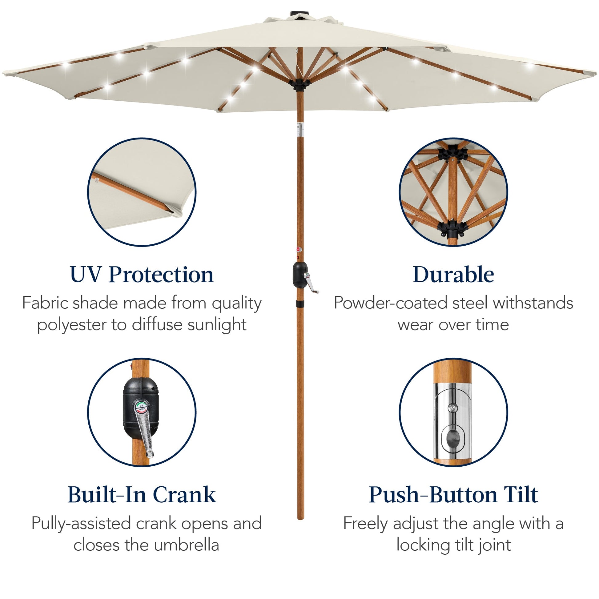 Woodgrain Pattern Solar LED Lighted Patio Umbrella w/ Adjustable Tilt - 10ft