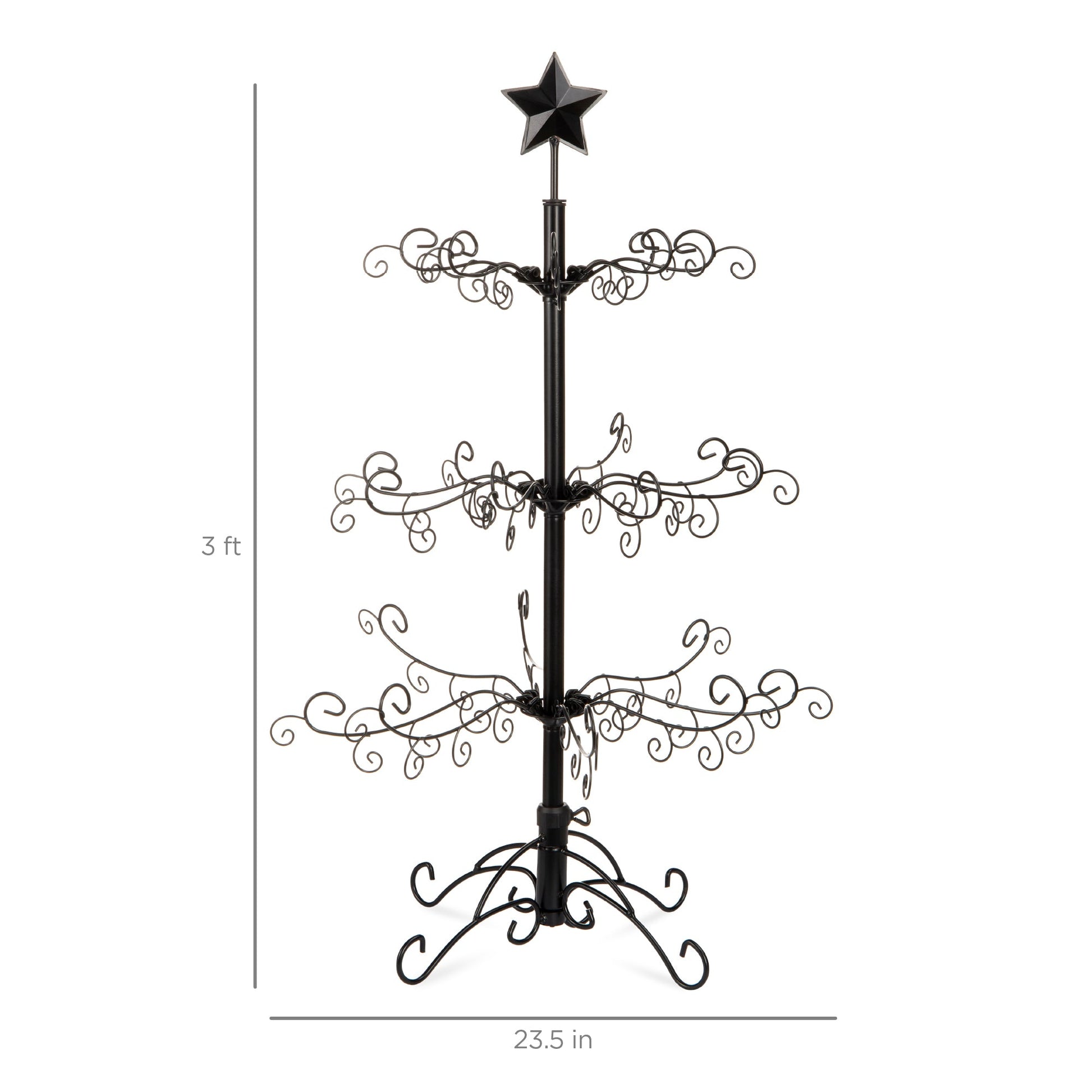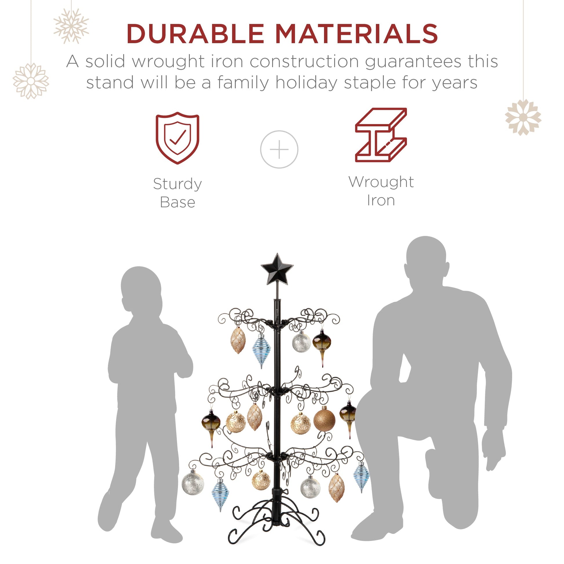 Wrought Iron Christmas Tree Ornament Display w/ Easy Assembly, Stand - 3ft
